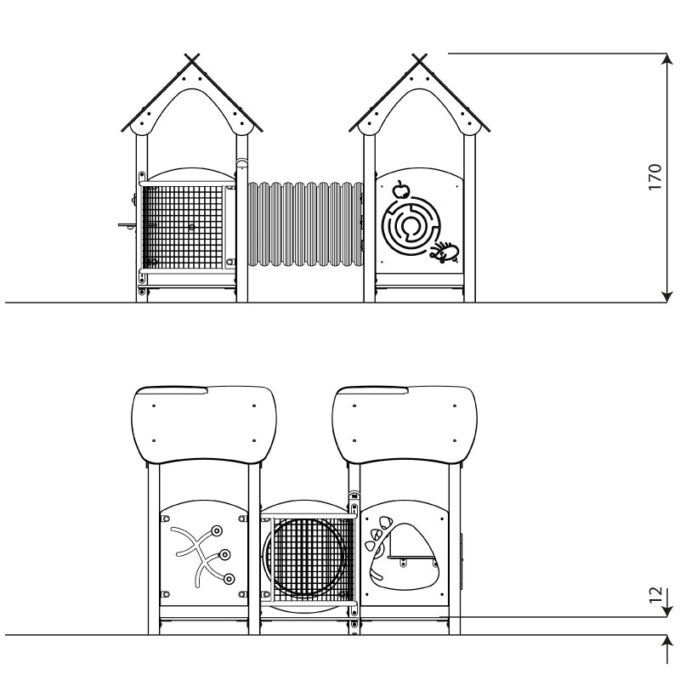 Technische Daten U3-Spielanlage aus 2 Häusern und Kriechrohr MINISWEET 0103 von Vinci Play