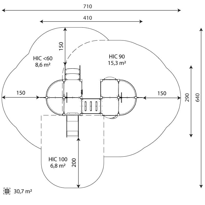 - Sicherheitszone: 30,7 m2