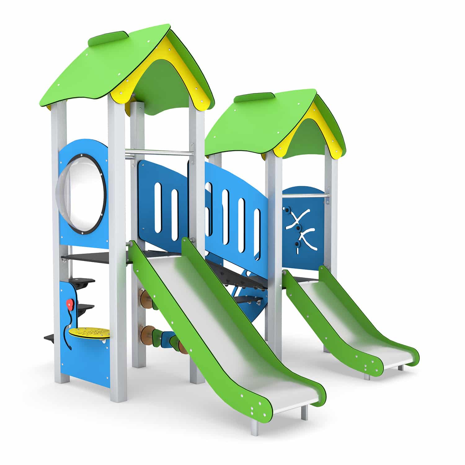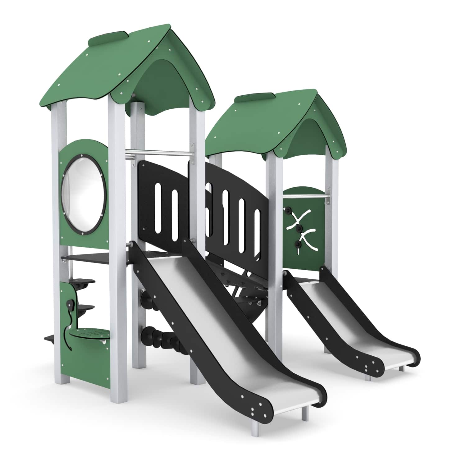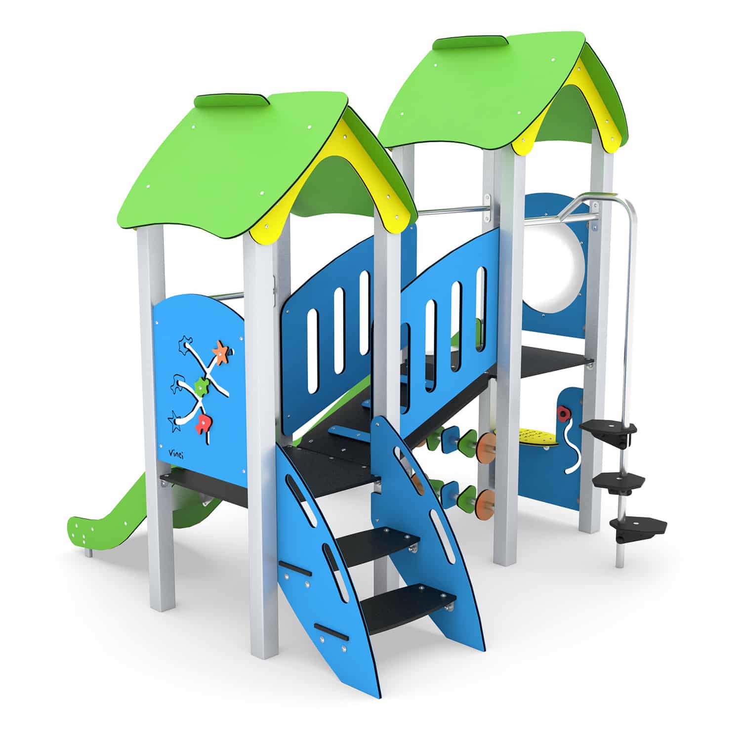 U3-Spielanlage mit 2 Türmen, Rutschen, Brücke und Kletterstange MINISWEET 0110 von Vinci Play