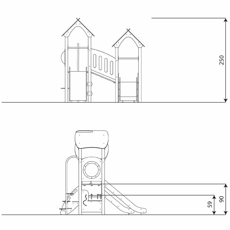 Technische Daten U3-Spielanlage mit 2 Türmen, Rutschen, Brücke und Kletterstange MINISWEET 0110 von Vinci Play