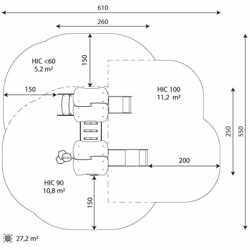 - Verankerung auf ebener Fläche, 80/70/60 cm tief; Rutsche sollte nicht nach Süden eingebaut werden;