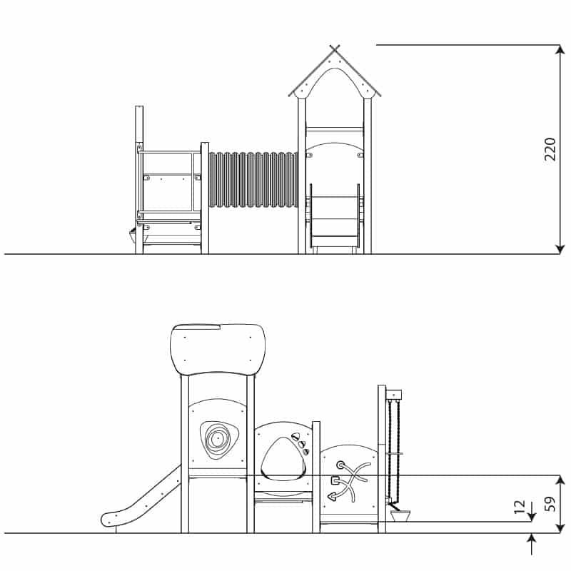 Technische Daten U3-Spielanlage mit Rutsche, Kriechrohr und Sandaufzug MINISWEET 0107 von Vinci Play