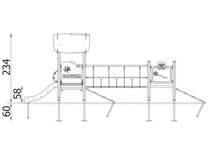Technische Daten U3-Spielanlage Quadro Baby mit großer Brücke, Rutsche und 3 Plattformen von Novum Spielgeräte