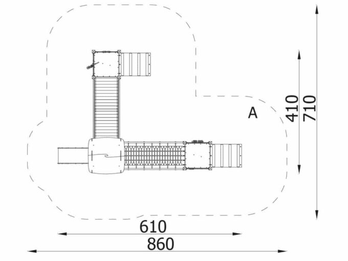 - Material: Lagerpfosten sind quadratisch und haben einen Querschnitt von 9×9 cm. Sie bestehen aus Brettschichtholz und werden 10 cm über dem Boden mit Metalldübeln befestigt. Rutschfeste Plattformen. Dächer, Sicherheitselemente und Paneele bestehen aus HDPE-Platten (hochfestes Polyethylen) mit Musterzuschnitten. Gleitfläche aus säurebeständigem Edelstahlblech. Seile aus Polypropylen mit Stahleinlage, Stärke 16-18 mm, vandalismus- und UV-beständig. Alle Beschläge und Anschlüsse sind witterungs- und UV-beständig. Holzelemente werden geölt oder mit einer Farblasur überzogen. Stahlelemente sind mit einer Zinkschicht und Pulverlackbeschichtung gegen Korrosion geschützt.