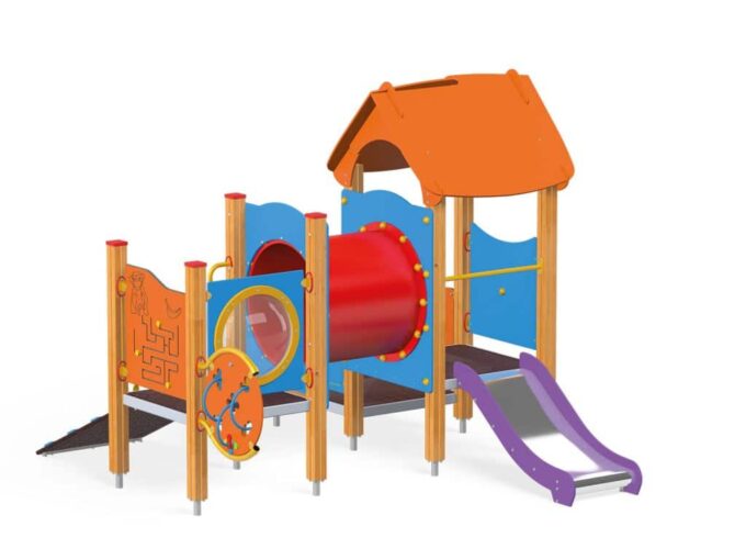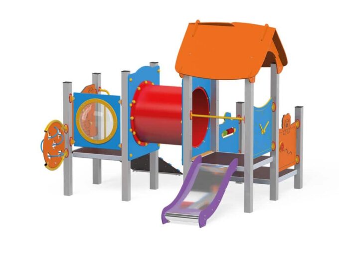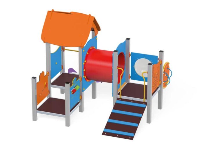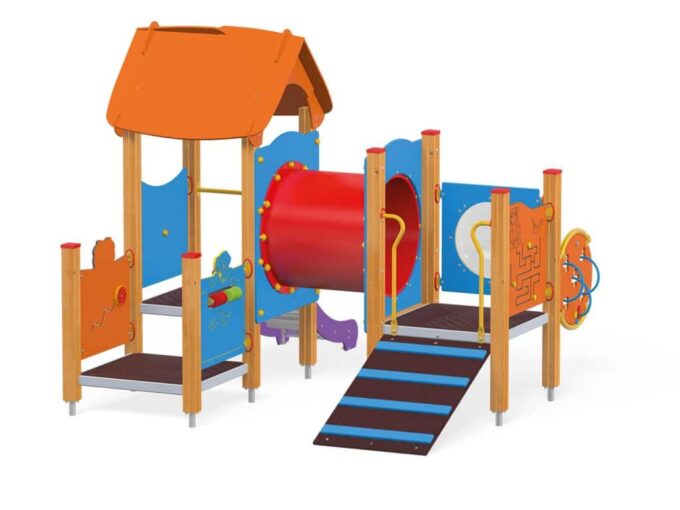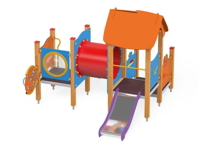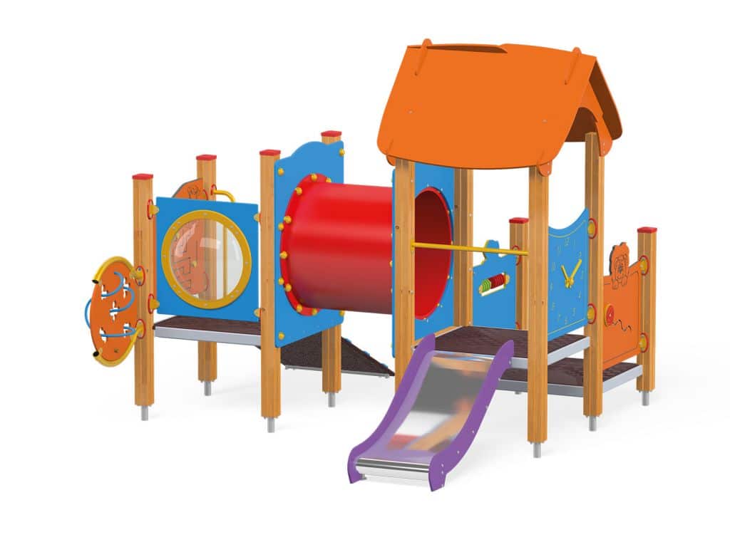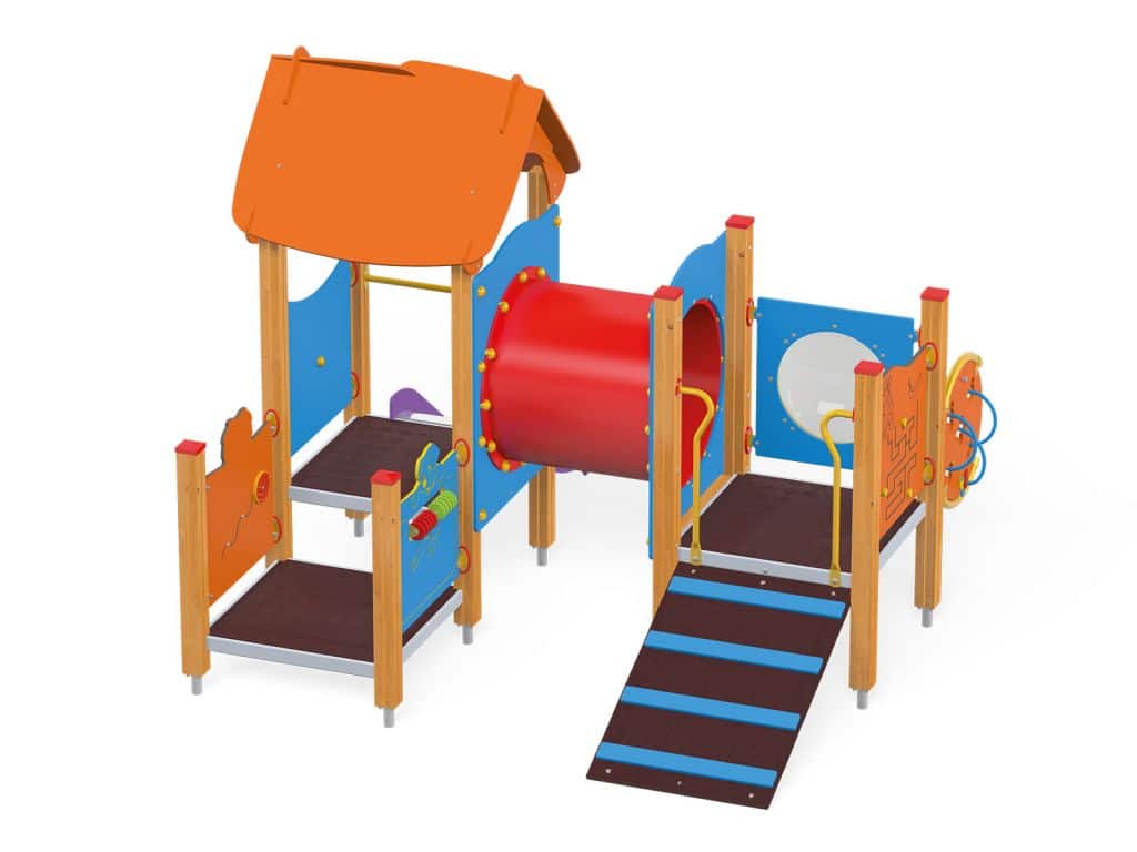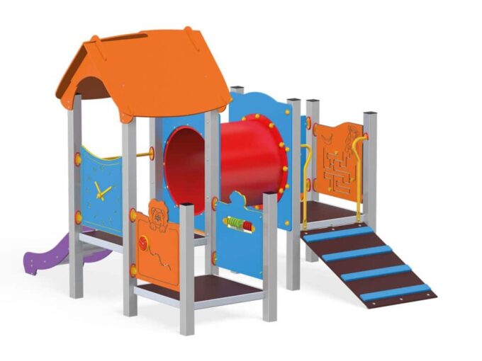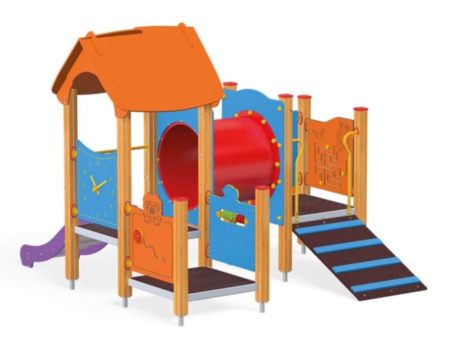 Ein kleines Set für Kinder. Der einfach zu überwindender Tunnel, 2 quadratischen Plattformen und einer niedrigen Rutsche gibt auch Babys, die gerade das Laufen gelernt haben, ein sicheres Spielgefühl. Ein weiterer Vorteil dieses Sets sind Manipulationen: Bär, Löwe und Abakus, die die Entwicklung von Kindern unterstützen, ihnen helfen, ihre Fähigkeiten und Motorik beim Spielen zu verbessern.