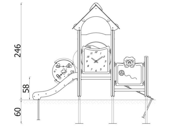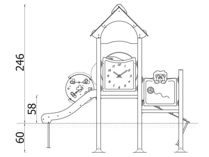 - Material Metall-Variante: Lagerpfosten aus quadratischen Stahlprofilen mit einem Kreuz 9x9xcm, direkt im Boden befestigt. Rutschfeste Plattformen. Dächer, Sicherheitselemente und Paneele sind aus HDPE-Platten (hochbeständiges Polyethylen) mit Musterzuschnitten. Gleitfläche aus säurefestem Material , Edelstahlblech Seile aus Polypropylen mit Stahleinlage, Stärke 16-18 mm, Vandalismus- und UV-beständig Alle Beschläge und Verbindungselemente sind witterungs- und UV-beständig Holzelemente sind geölt oder mit einer Farblasur versehen Stahlelemente sind geschützt gegen Korrosion mit Zinkschicht und Pulverlackbeschichtung..