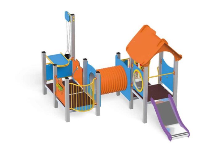 U3-Spielanlage Quadro Baby mit Tunnel, Rutsche und Sandaufzug von Novum Spielgeräte