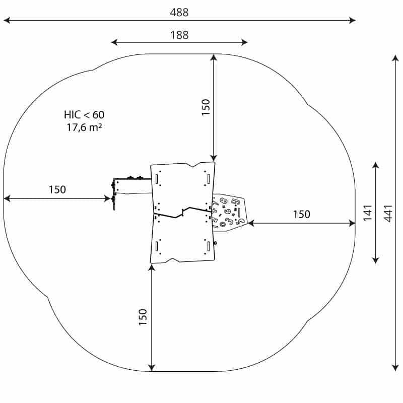 - Verankerung auf ebener Fläche, 80/70/60 cm tief;