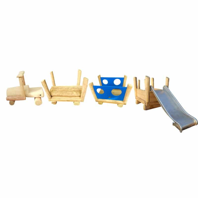 U3-Spielkombi Eisenbahn 4-teilig aus Robinien-Holz