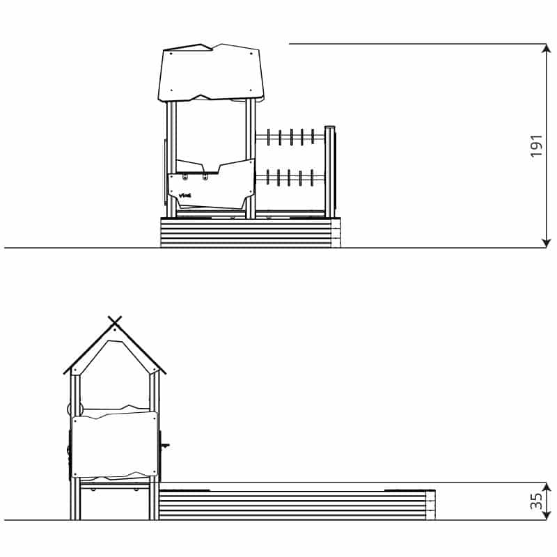 Technische Daten U3 Spielplattform mit rechteckigen Sandkasten – RECYCLED RC1455 von Vinci Play