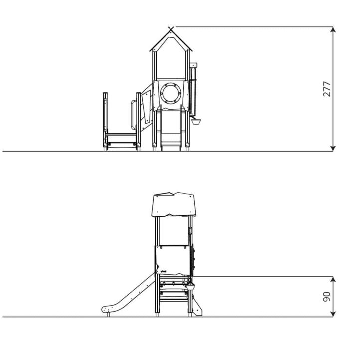 - Plattformhöhe der Rutsche: 90 cm