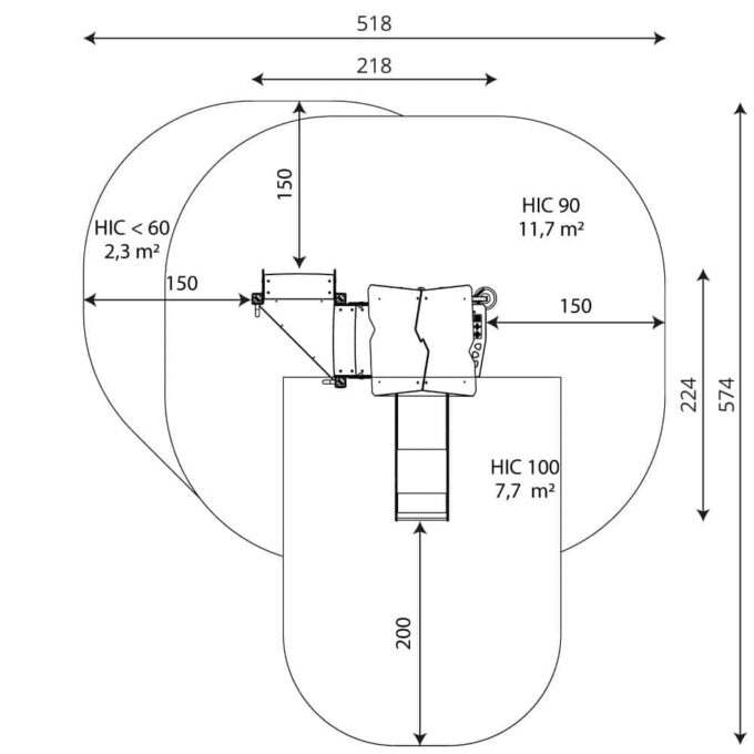 - Sicherheitszone: 21,7 m2
