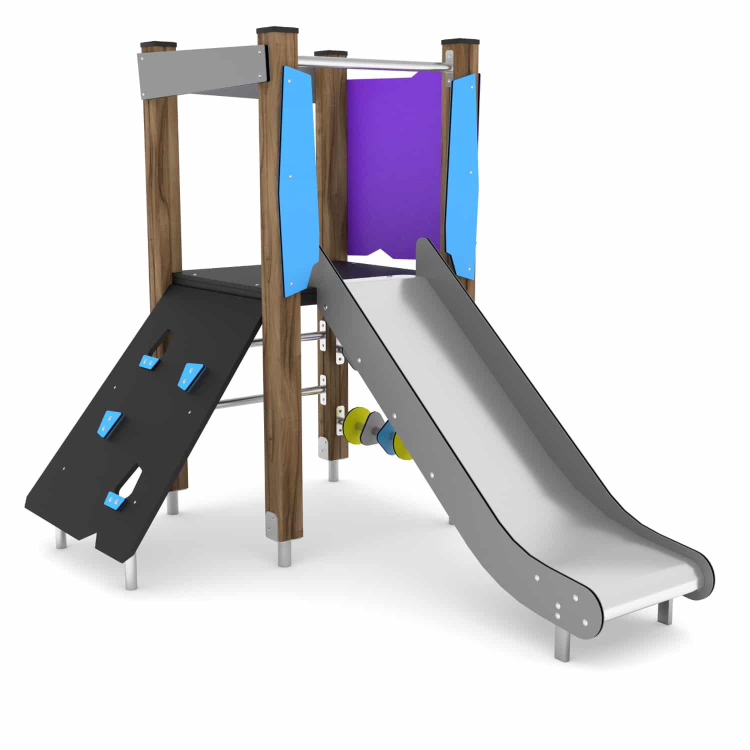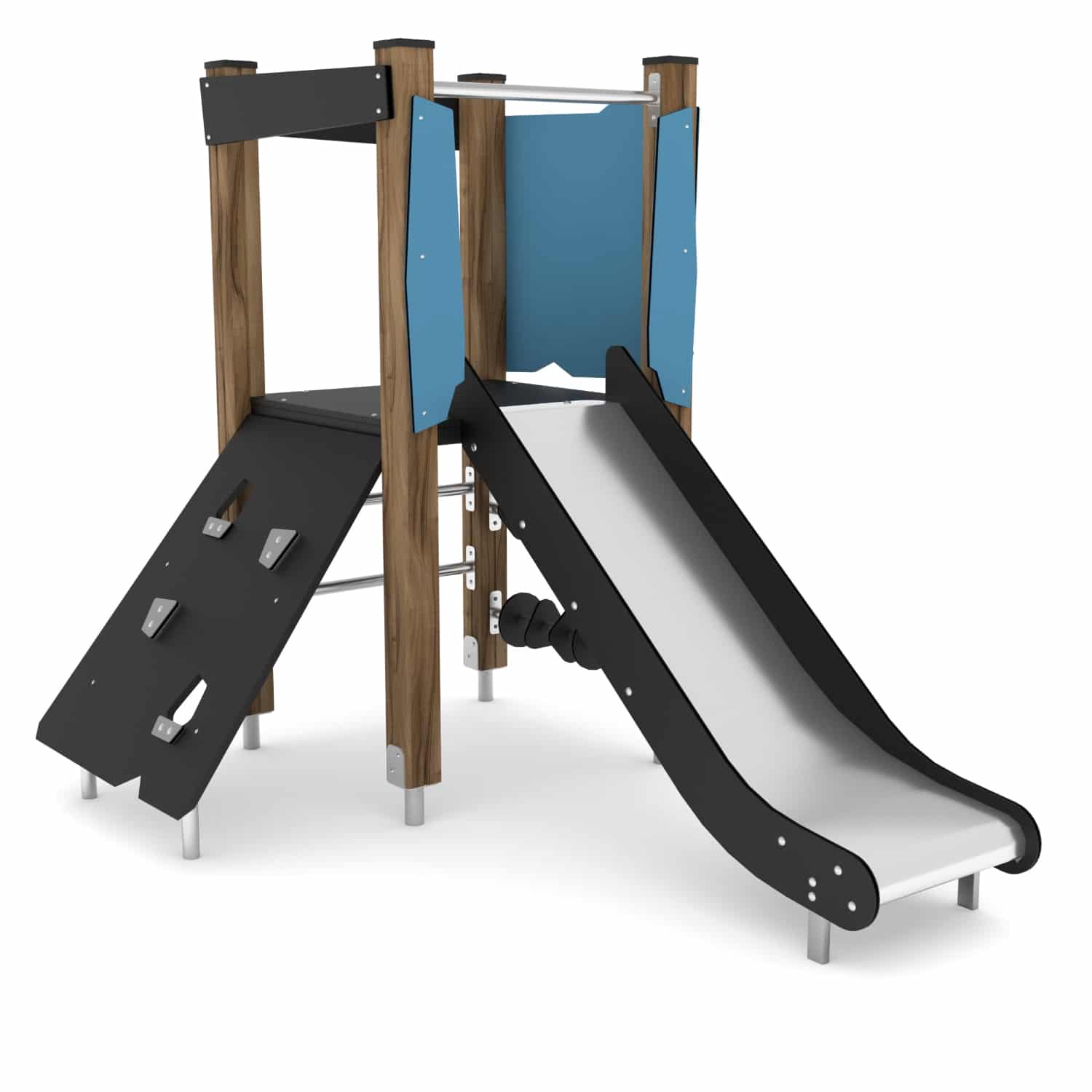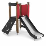 - Rutschen aus Edelstahl mit strapazierfähigen HDPE- oder HPL-Seitenwänden, Bewegliche Elemente aus strapazierfähiger HDPE- oder HPL-Platte, witterungsbeständig,