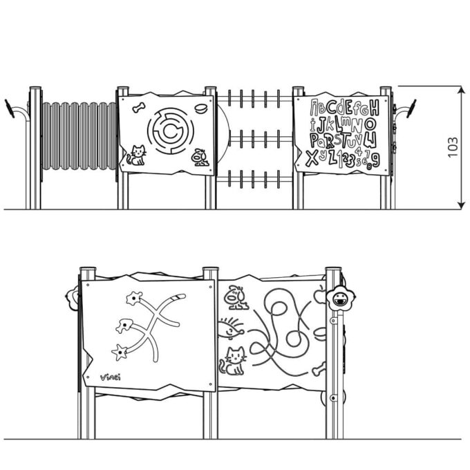 Technische Daten U3 Spielwandanlage mit Kriechtunnel und Labyrinth – RECYCLED RC1437 von Vinci Play