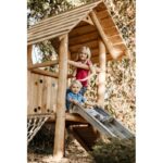 - 1 Turm PH 59 cm; Standpfosten Ø 12cm; vormontiert mit Dach, Bodenplatte sowie Geländer mit Gucklöchern (bei Variante mit Stahlankern: mit Stahlankern an den Turm-Pfosten)