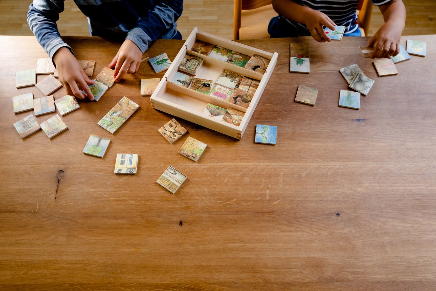 - Konzentration und Geduld: Das Zuordnen der Motive erfordert Aufmerksamkeit und fördert gezielte Konzentration sowie ein Durchhaltevermögen, um die Paare erfolgreich zusammenzustellen.