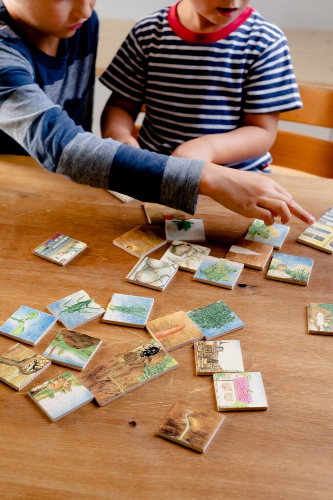 - Konzentration und Geduld: Das Zuordnen der Motive erfordert Aufmerksamkeit und fördert gezielte Konzentration sowie ein Durchhaltevermögen, um die Paare erfolgreich zusammenzustellen.