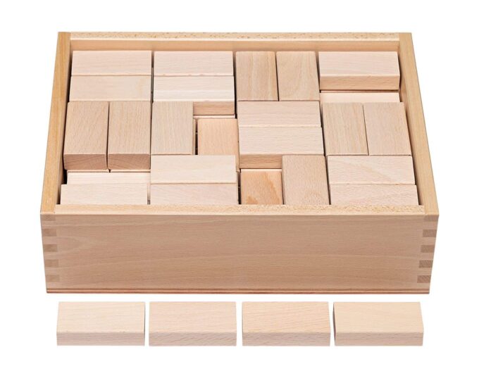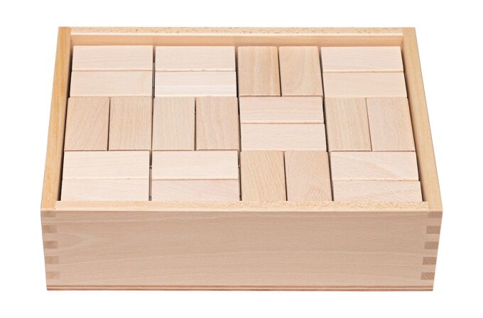 - Inhalt: 96 Bausteine aus Buche natur + 1 Holzbaukasten