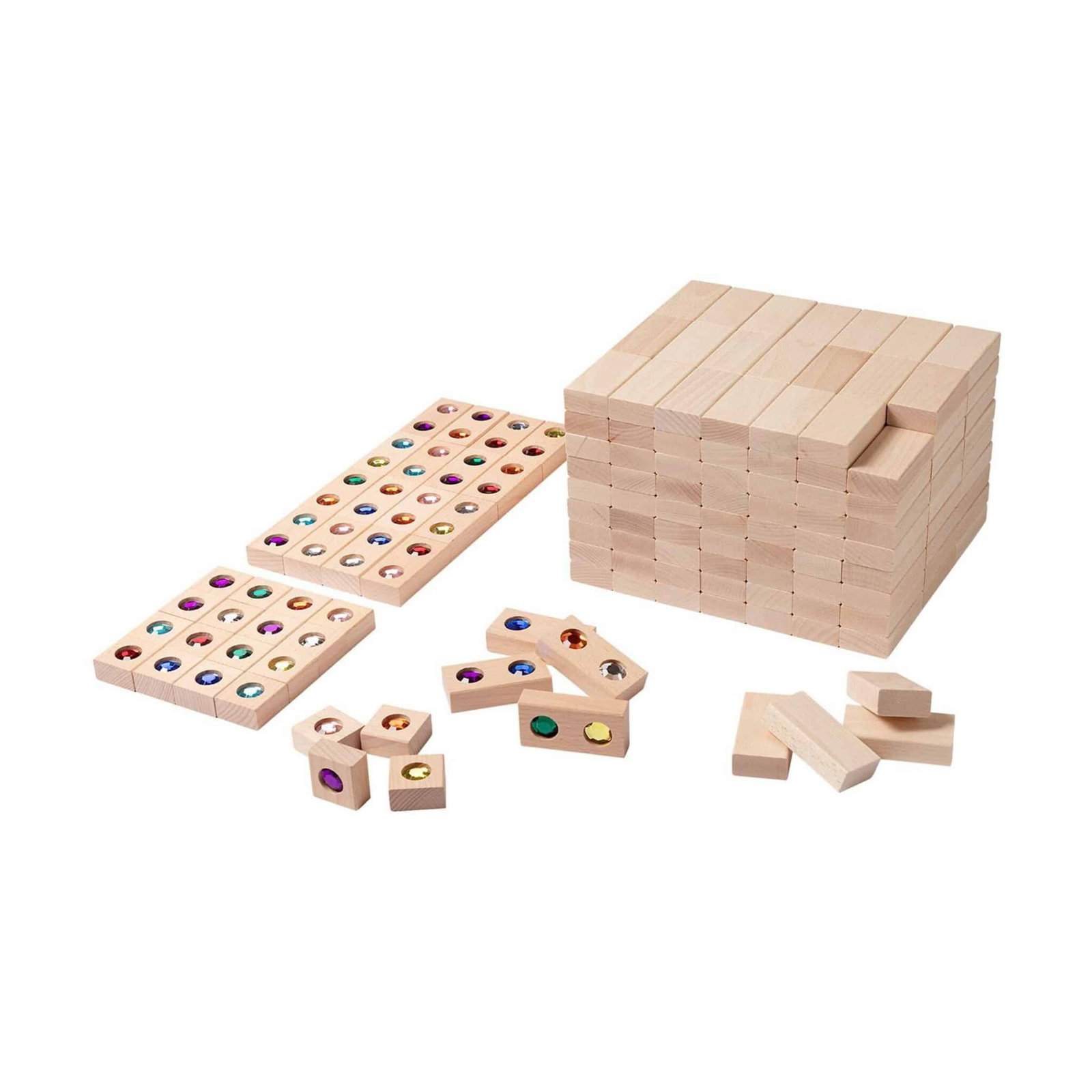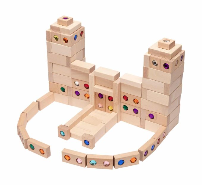 - Hochwertige Materialien: Unsere Uhl Bausteine sind aus massivem Buchenholz gefertigt, was nicht nur Qualität und Langlebigkeit garantiert, sondern auch einen warmen, natürlichen Look bietet. Die Juwelen bestehen aus sicherem Kunststoff, der den strengen Sicherheitsvorschriften entspricht.