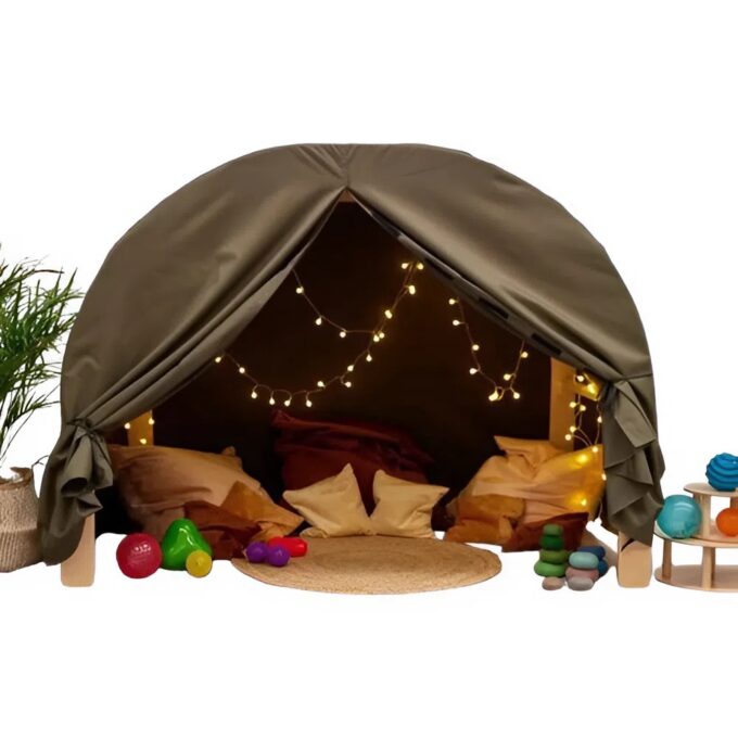 In einem belebten Kita-Alltag benötigen Kinder Orte, an denen sie sich zurückziehen und entspannen können. Die dunkle Höhle bietet ein Gefühl von Geborgenheit und Sicherheit. Hier können Kinder eine Pause einlegen, sich einkuscheln, ein Buch ansehen oder einfach nur für sich sein, um neue Energie zu tanken. - Fördert vertrauliche Gespräche und soziale Interaktion