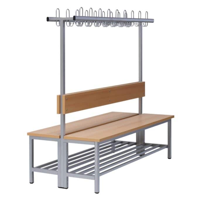 Umkleidebank doppelseitig mit Sitzfläche Melamin und Hakenleiste – Doppelte Funktionalität für maximale Raumausnutzung