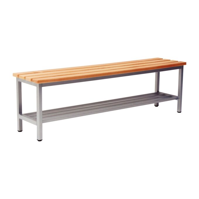 Die Umkleidebank mit Massivholz Sitzleisten und Schuhrost verbindet die Wärme und Natürlichkeit von echtem Buchenholz mit der praktischen Funktionalität einer modernen Umkleidezone. Diese hochwertige Sitzbank setzt auf bewährte Materialien und durchdachte Konstruktion: Sitz- und Rückenlehnenleisten aus naturbelassenem Buche-Massivholz treffen auf ein robustes Stahlgestell mit integriertem Schuhrost. Die natürliche Holzmaserung verleiht jedem Umkleidebereich eine warme, einladende Atmosphäre, während das stabile 4-Fuß-Gestell für zuverlässigen Halt sorgt. Erhältlich in drei verschiedenen Längen und mit individuell wählbarer RAL-Gestellfarbe passt sich diese Umkleidebank flexibel an verschiedene Raumkonzepte an und wird zum natürlichen Highlight jeder Garderobe.