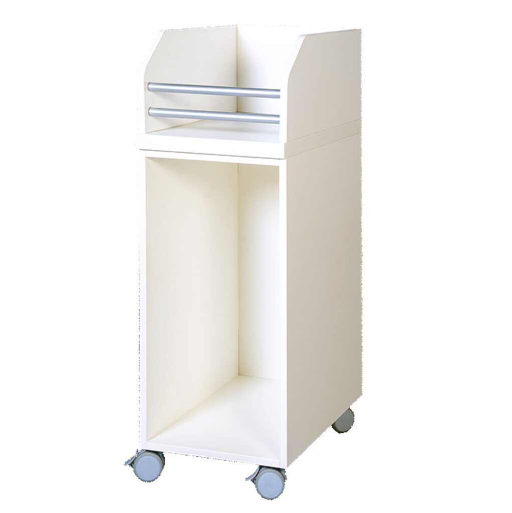- Alles an einem Ort, immer griffbereit: Der Wagen bündelt alle Notwendigkeiten. Oben auf der Arbeitsplatte finden Cremes, Puder und frische Bodys Platz, während unten diskret und hygienisch der Windeleimer untergebracht ist. Kein Suchen, kein Bücken – alles ist in Reichweite.