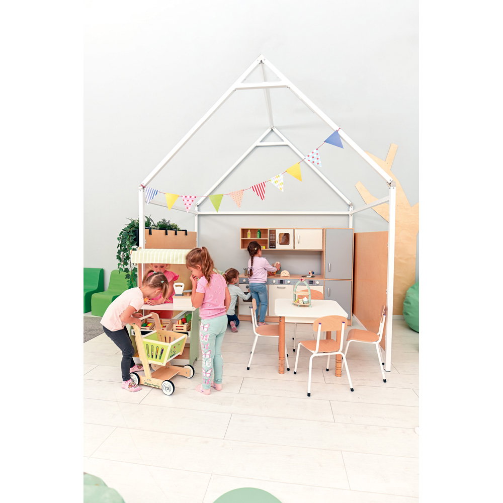 Der stabile Stand aus Holz ist auf die intensive Nutzung in Kitas und Spielzimmern ausgelegt und verspricht langanhaltenden Spielspaß.