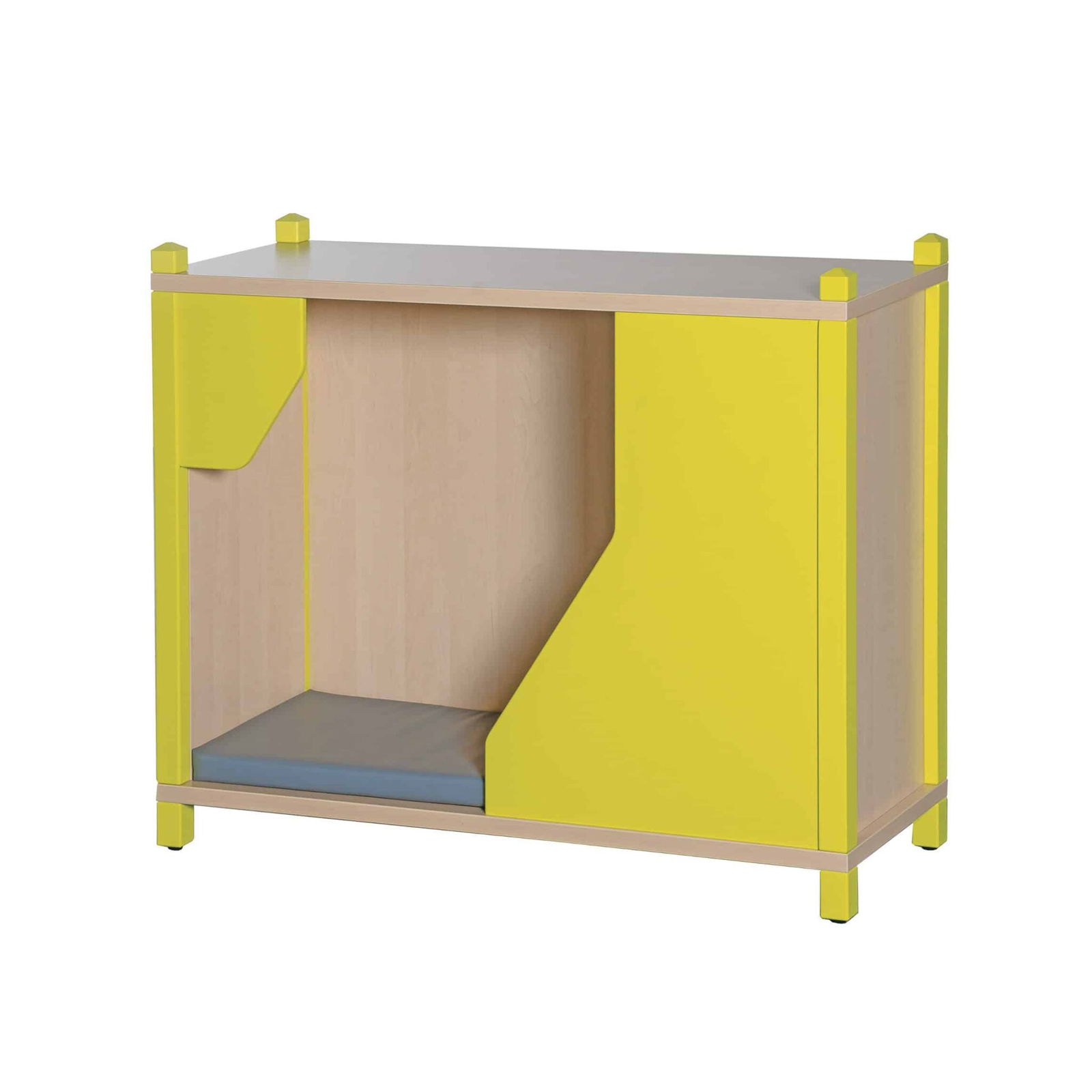 - Sicherer Rückzugsort: In einem trubeligen Kita-Alltag benötigen Kinder Orte, an denen sie zur Ruhe kommen und Reize verarbeiten können. Das höhlenartige Innere des Schranks bietet einen geschützten Raum, der Sicherheit und Geborgenheit vermittelt – ideal für eine kurze Auszeit oder stille Momente.