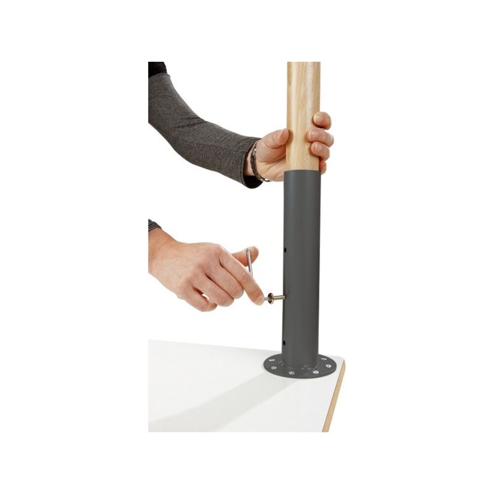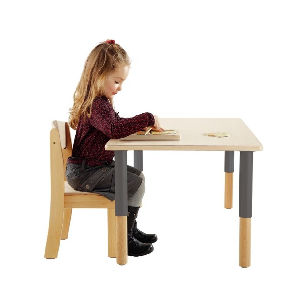 Kinder wachsen schnell, und dieser Tisch wächst einfach mit ihnen. Sie können die Tischbeine aus massivem, lackiertem Buchenholz mühelos in drei verschiedenen Höhen arretieren. Eine doppelte Verschraubung garantiert dabei eine sichere und extrem feste Montage. So nutzen Sie den Tisch über viele Jahre hinweg für unterschiedliche Altersgruppen, ohne Kompromisse bei der Stabilität einzugehen. Integrierte Stellschrauben an den Füßen gleichen zudem kleine Unebenheiten im Boden problemlos aus. Gleichzeitig verhindern spezielle Bodengleiter störende Geräusche und unschöne Abnutzungsspuren im Alltag.