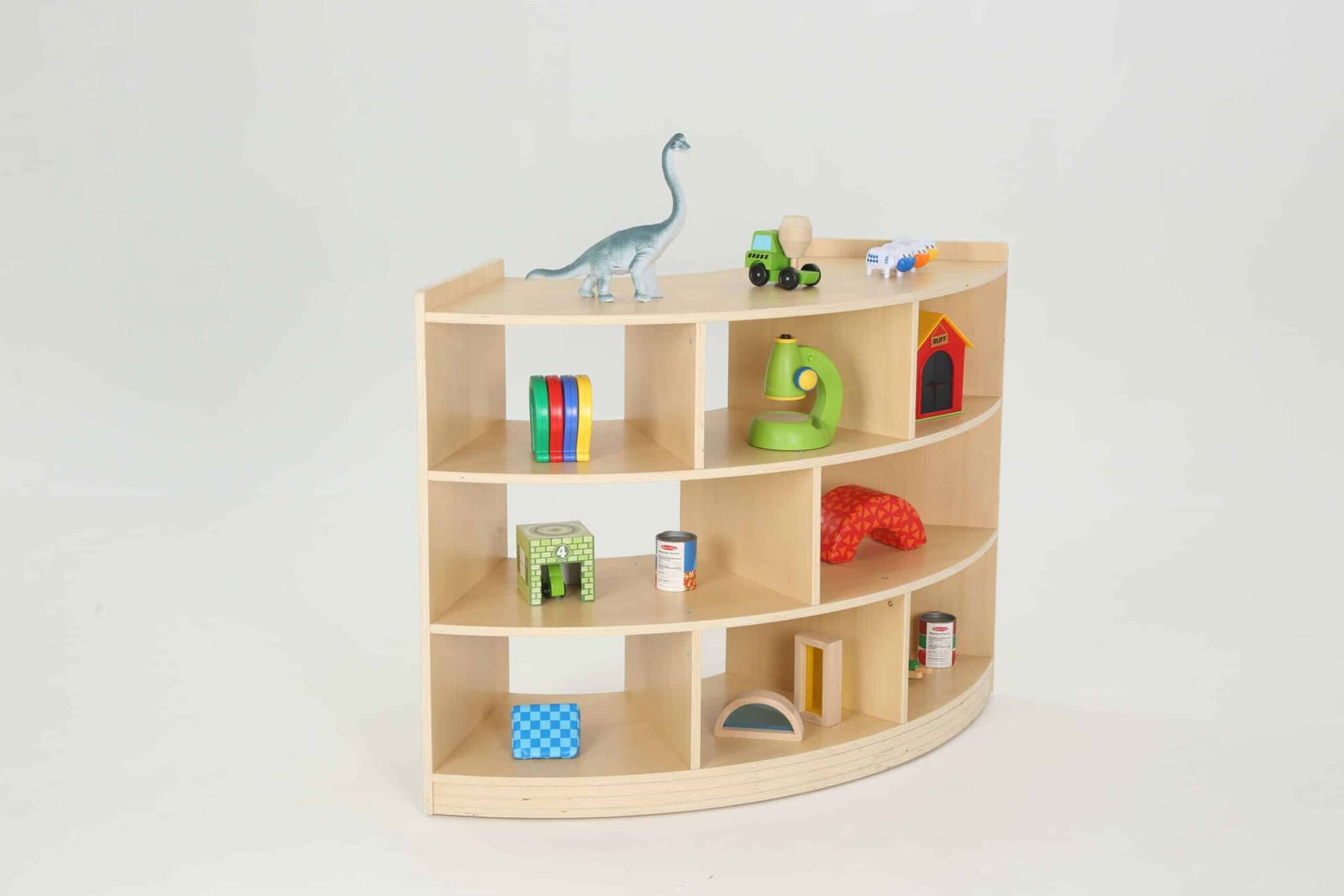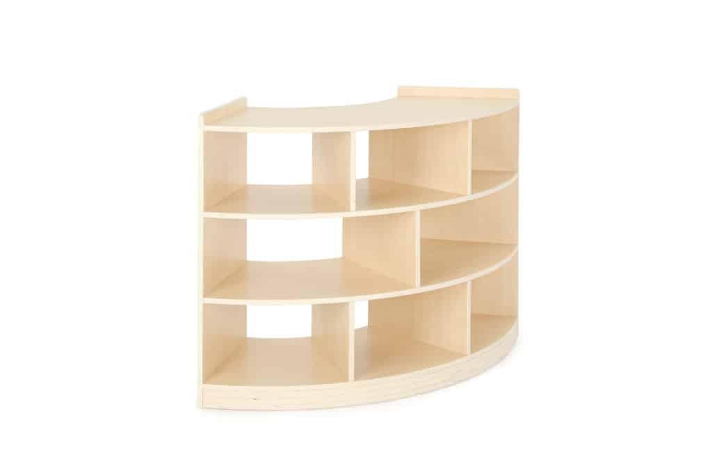 Viertelkreisschrank „Owlaf“ mit 3 Böden, 8 Fächern für Kitas & Krippen