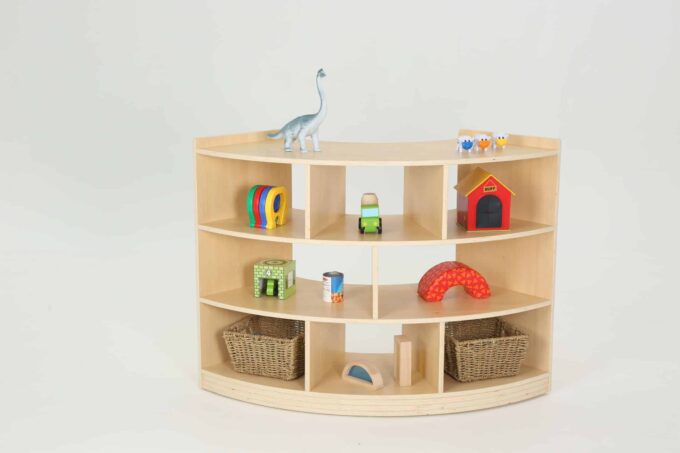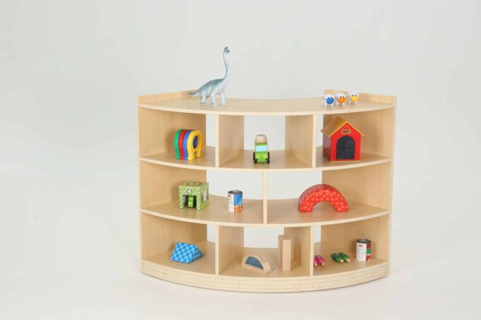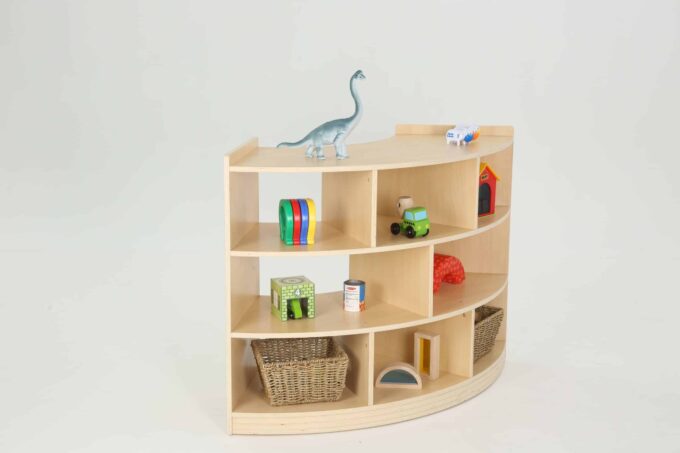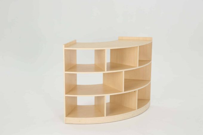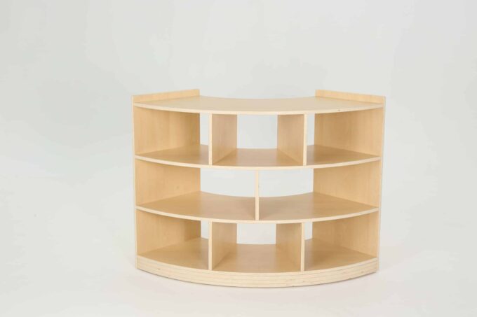 Viertelkreisschrank „Owlaf“ mit 3 Böden, 8 Fächern für Kitas & Krippen