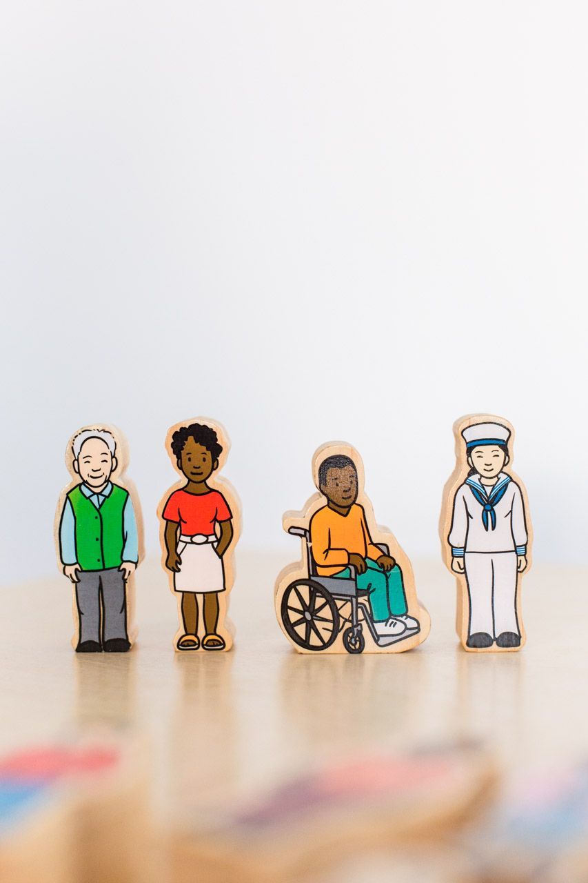 Das 42-teilige Holzspielzeug Village People ist liebevoll gestaltet und bietet Kindern ab 3 Jahren vielfältige Möglichkeiten. Mit unterschiedlichen Kulturen, Altersgruppen und Berufen vermittelt es spielerisch Diversität.