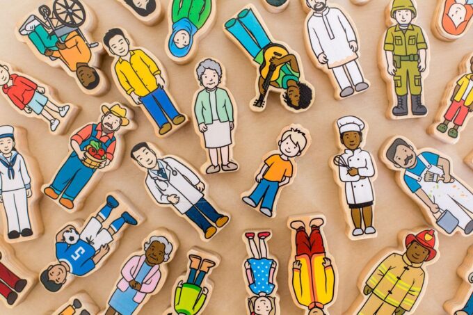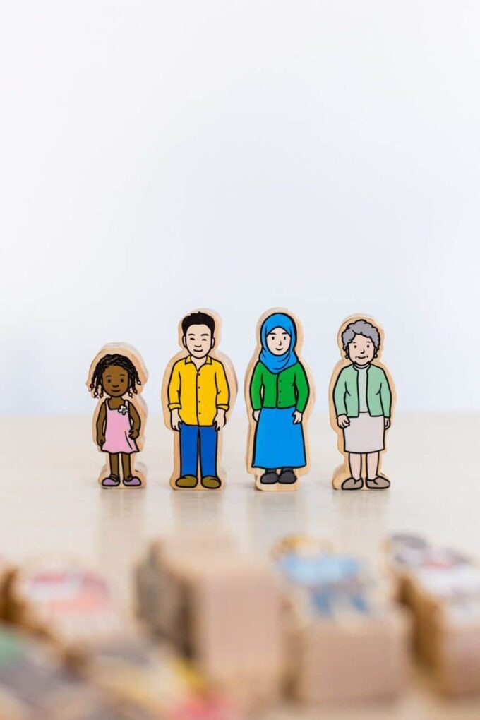 Das 42-teilige Holzspielzeug Village People ist liebevoll gestaltet und bietet Kindern ab 3 Jahren vielfältige Möglichkeiten. Mit unterschiedlichen Kulturen, Altersgruppen und Berufen vermittelt es spielerisch Diversität.