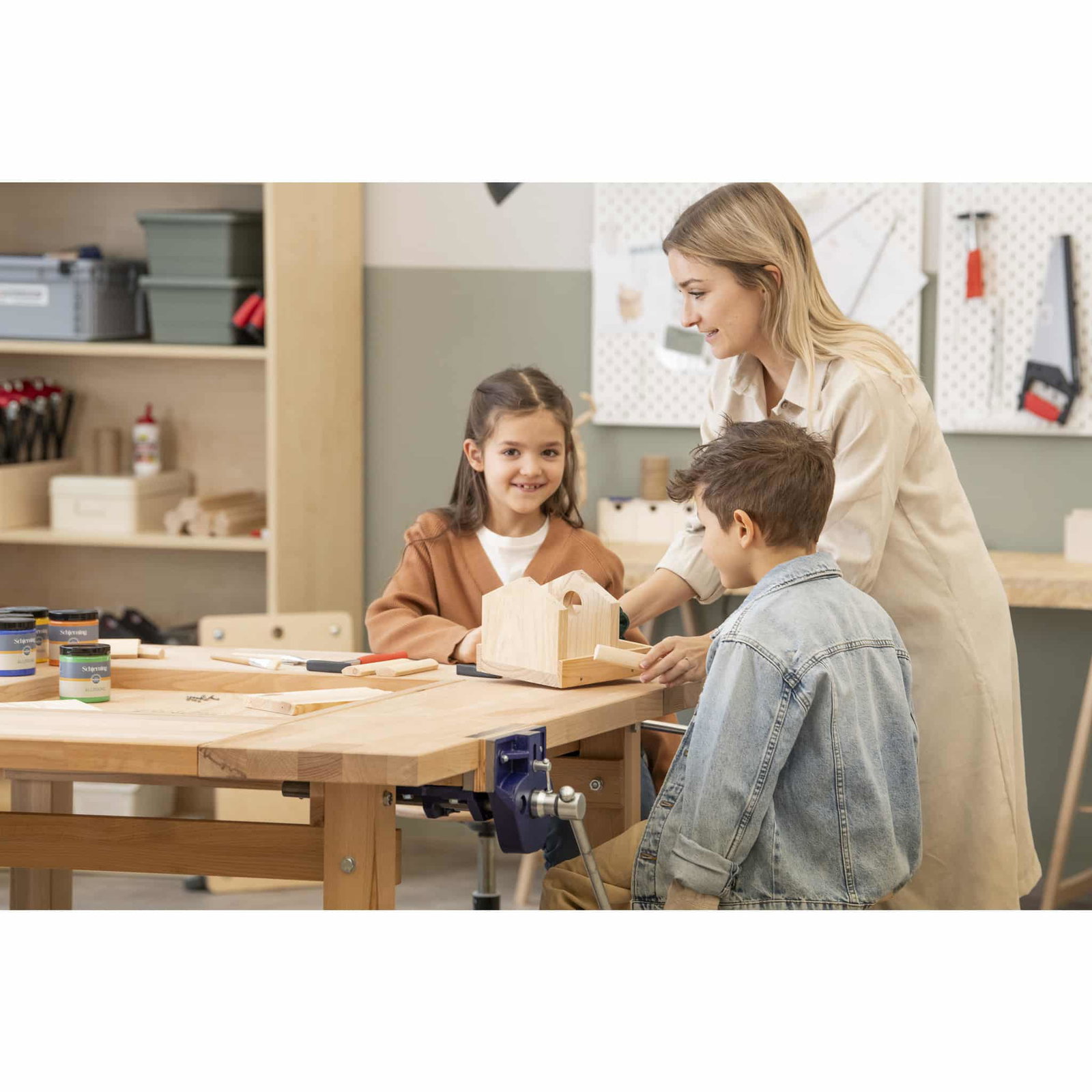 - Praktisches Lernen für Kinder: Vermitteln Sie Kindern die Grundlagen der Holzverarbeitung und gleichzeitig die Bedeutung des Naturschutzes.
