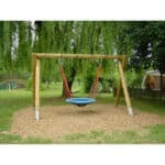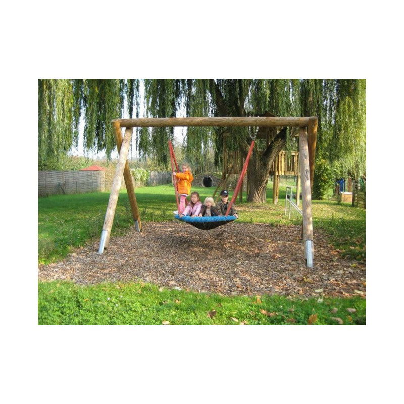 Unser Vogelnest-Schaukelgestell wird aus naturgewachsenen Robinienstämmen gefertigt  und eignet sich speziell für das Aufhängen eines Vogelnestkorbs! Die urig anmutende Vogelnestschaukel sorgt, egal wo – ob in Kindergärten, Schulen oder auf Spielplätzen- immer für großen Schaukelspaß und ist ein sehr beliebtes Spielgerät! Sie wird deshalb meist von mehreren Kindern gleichzeitig in Beschlag genommen. Für das massive Schaukelgestell und den stabilen Sitz ist das gar kein Problem.