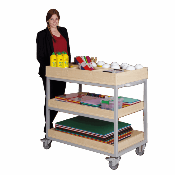 Vorbereitungswagen fahrbar mit 3 Ablagen für Kitas & Schulen