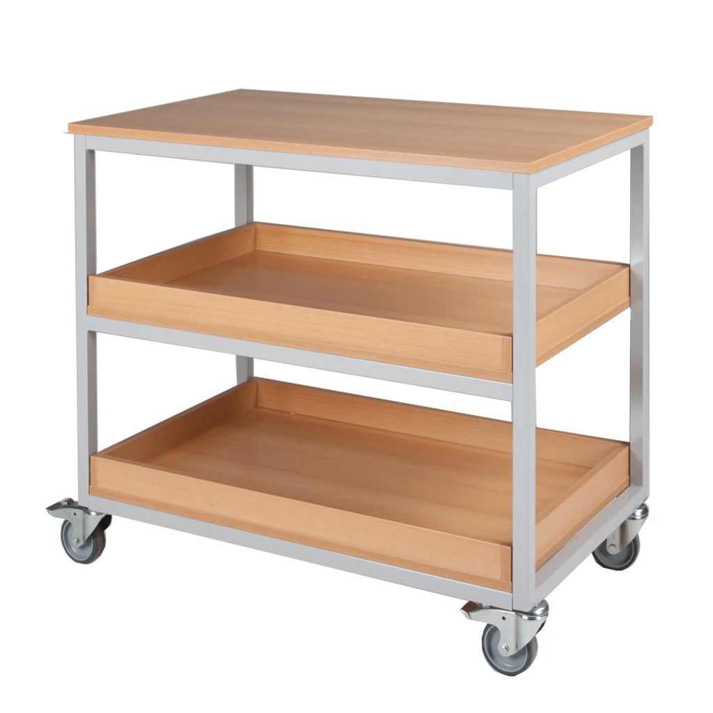 Vorbereitungswagen mit 3 Ablageböden (2 mit Aufkantung), fahrbar für Kitas & Schulen