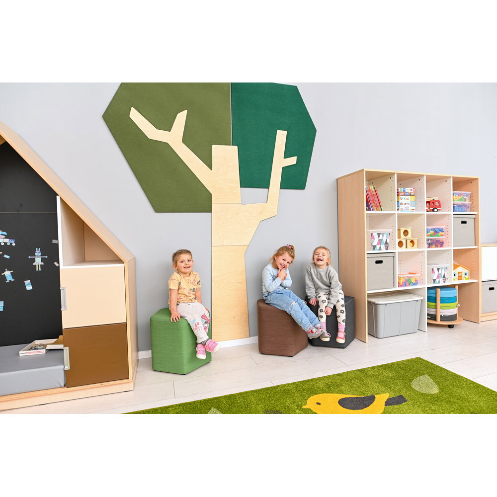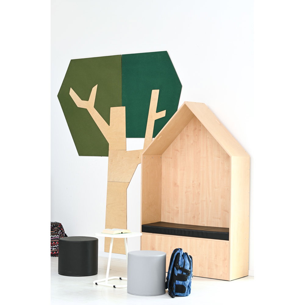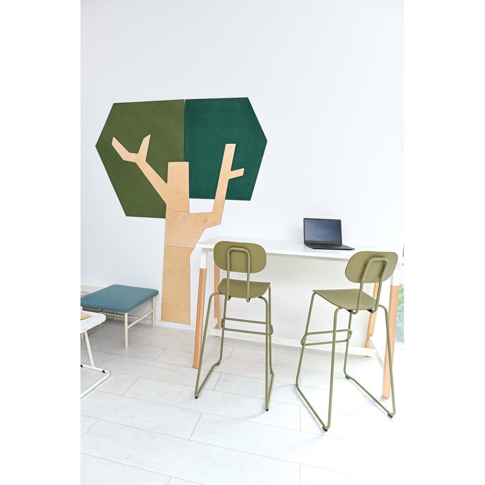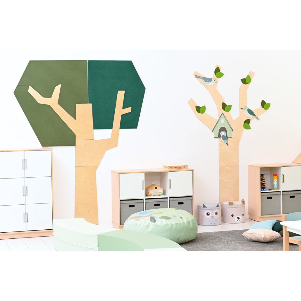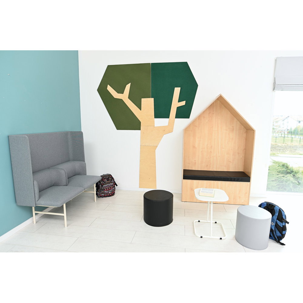 Setzen Sie ein architektonisches Statement und verbessern Sie gleichzeitig das Raumklima. Die Wandapplikation „Baum mit eckiger Krone“ ist ein außergewöhnliches Gestaltungselement, das modernes Design mit funktionaler Raumakustik auf beeindruckende Weise verbindet. Mit seiner klaren, geometrischen Form und einer imposanten Höhe von fast 2,5 Metern wird dieser Baum zum stilvollen Mittelpunkt in Eingangsbereichen, Fluren, Büros oder modernen Lernlandschaften. Er schafft eine einzigartige Verbindung von Natur-Assoziation und zeitgenössischer Ästhetik und wertet jeden Raum sowohl optisch als auch funktional auf.