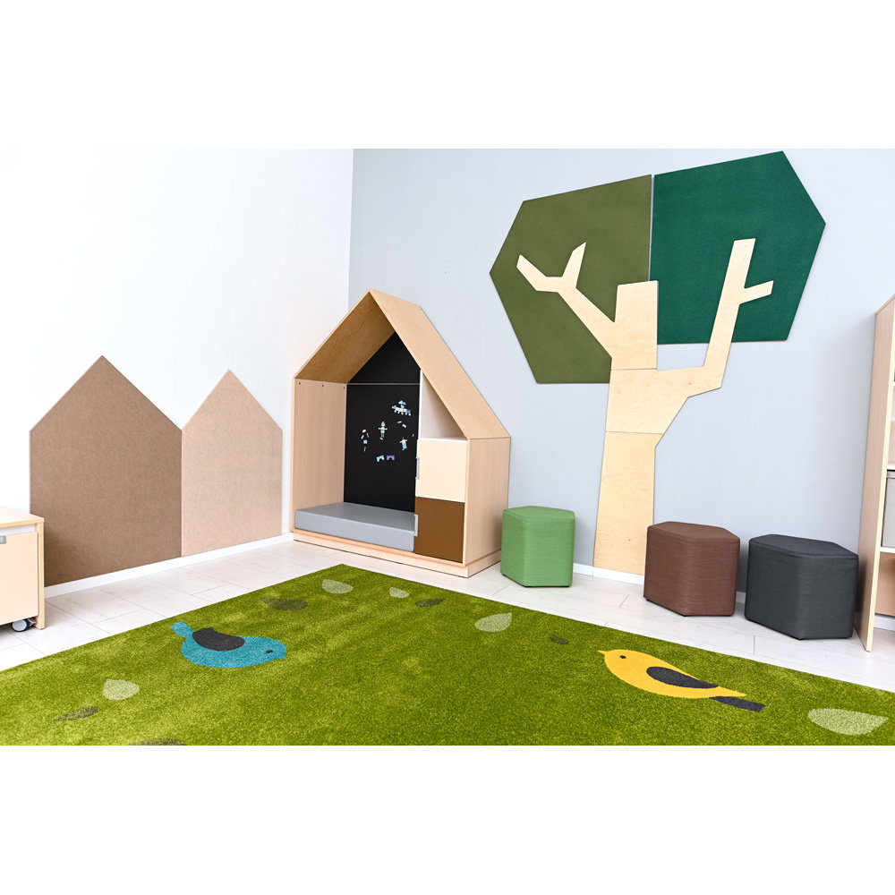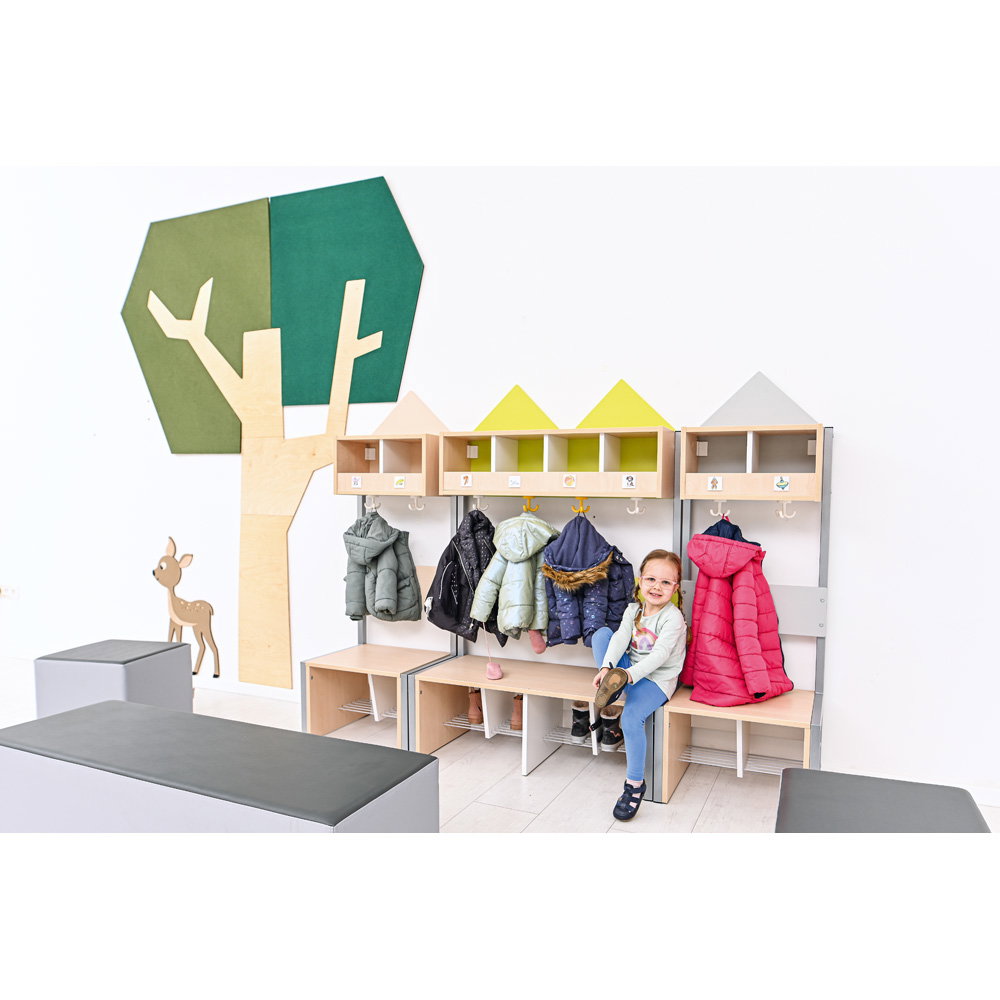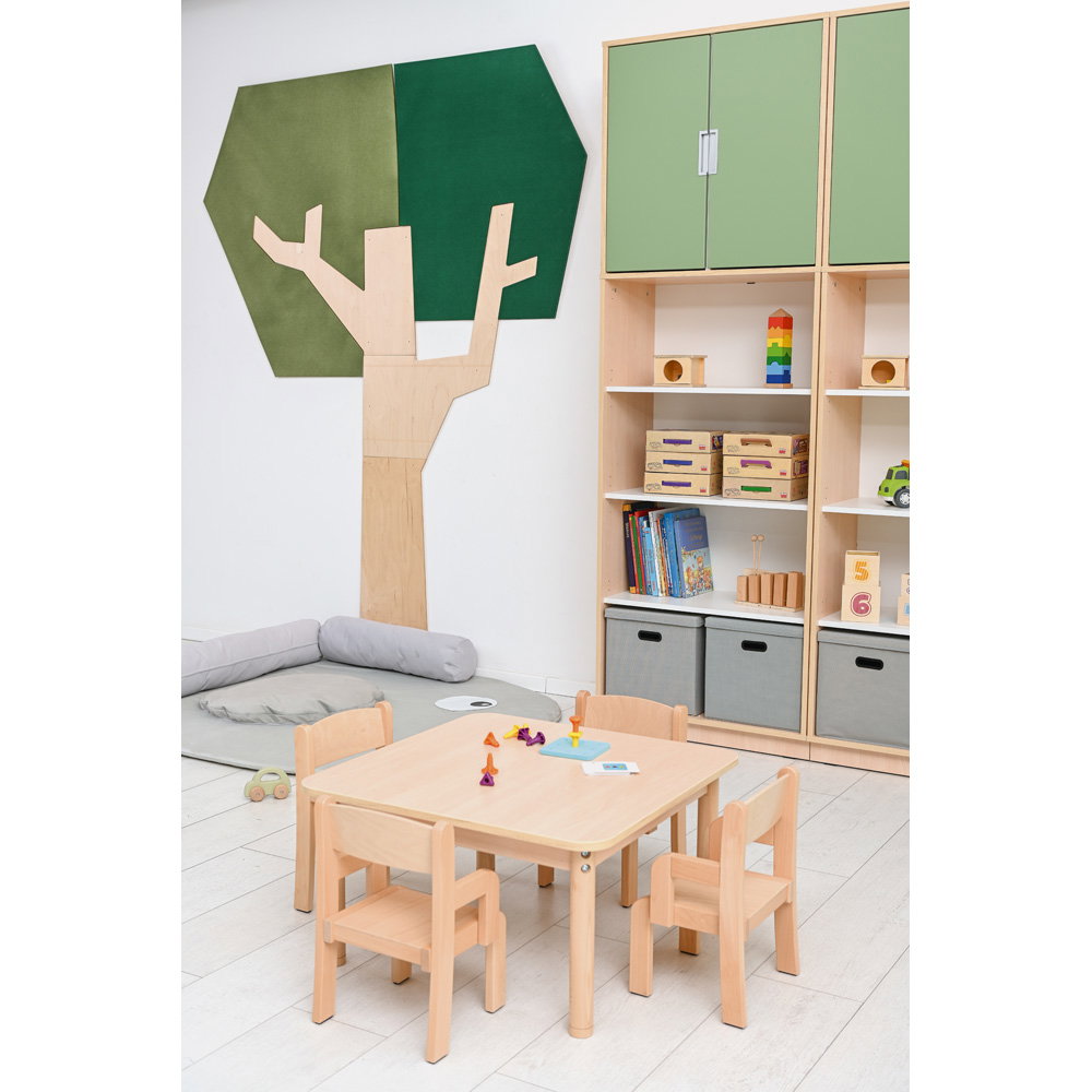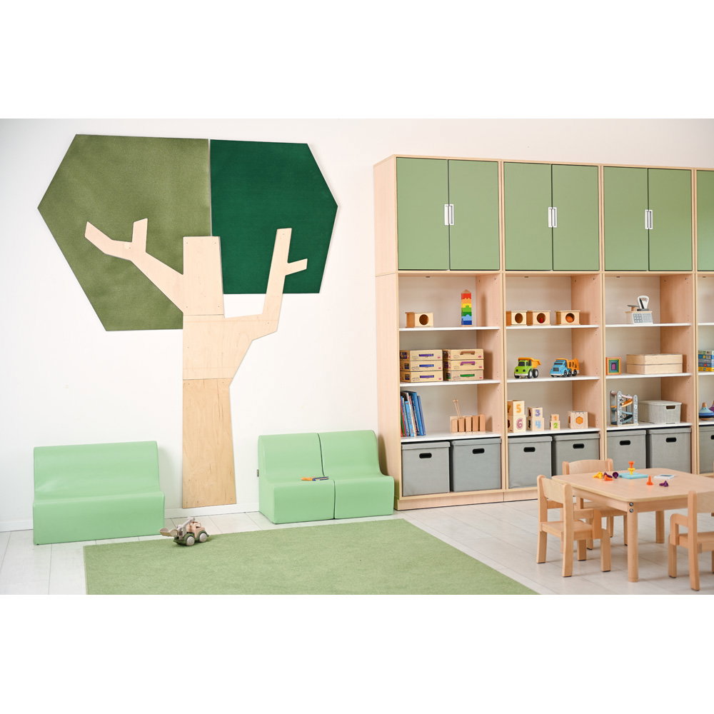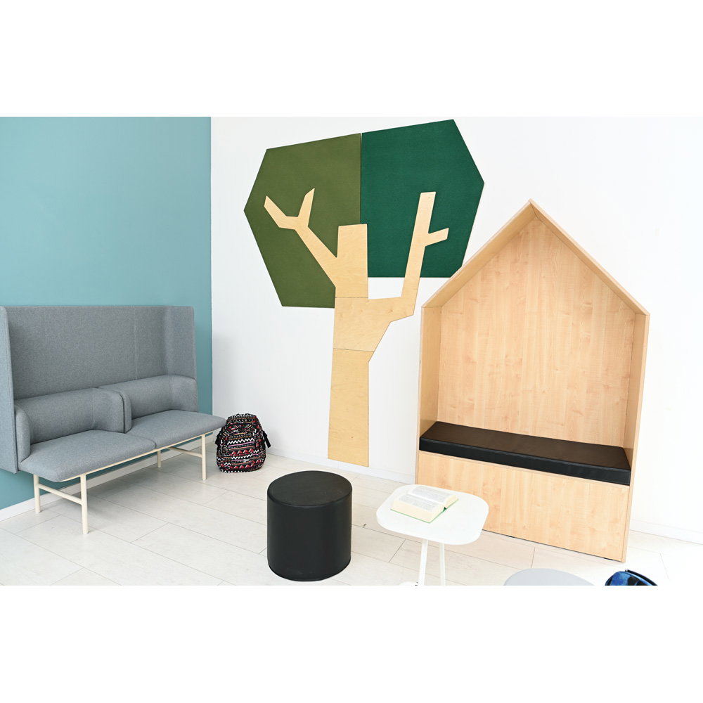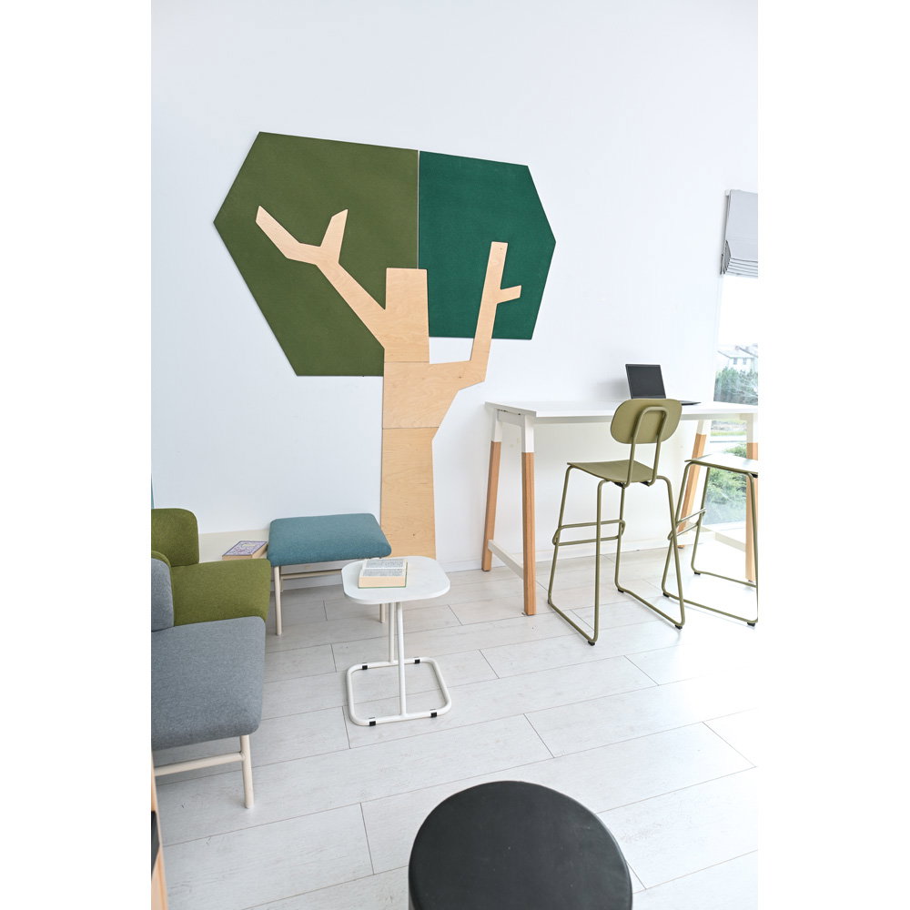 Setzen Sie ein architektonisches Statement und verbessern Sie gleichzeitig das Raumklima. Die Wandapplikation „Baum mit eckiger Krone“ ist ein außergewöhnliches Gestaltungselement, das modernes Design mit funktionaler Raumakustik auf beeindruckende Weise verbindet. Mit seiner klaren, geometrischen Form und einer imposanten Höhe von fast 2,5 Metern wird dieser Baum zum stilvollen Mittelpunkt in Eingangsbereichen, Fluren, Büros oder modernen Lernlandschaften. Er schafft eine einzigartige Verbindung von Natur-Assoziation und zeitgenössischer Ästhetik und wertet jeden Raum sowohl optisch als auch funktional auf.