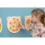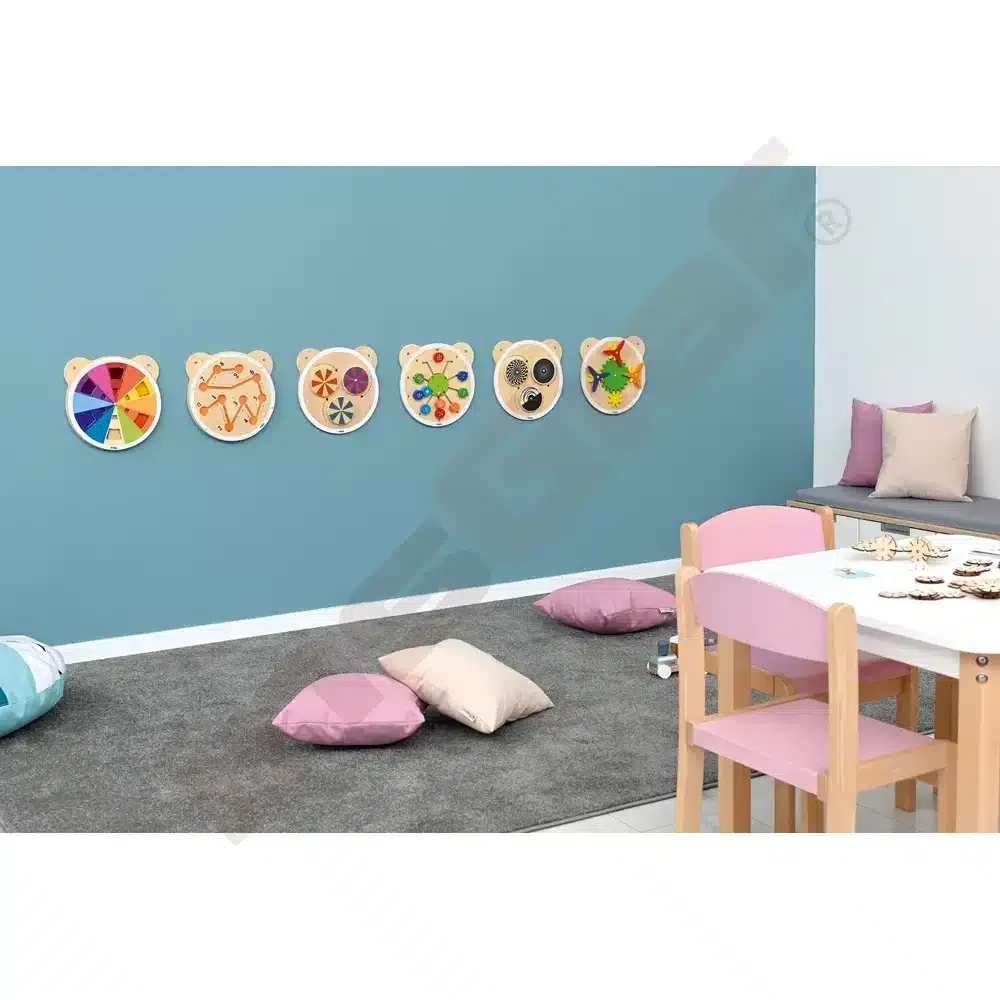Unsere Wandapplikation Motorikspiel, Kugel-Labyrinth kombiniert spielerische Elemente mit pädagogischem Mehrwert und ist ideal für Kinder ab 18 Monaten. Diese Wandapplikation in Form eines süßen Bärenkopfs bietet ein spannendes Kugel-Labyrinth, das die Auge-Hand-Koordination, Farberkennung und logisches Denken trainiert.