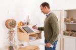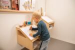 Der Wandarbeitsplatz von Dusyma ist die ideale Lösung für flexible und platzsparende Arbeitsumgebungen für Kinder und Erwachsene. Diese kompakte Arbeitsplatzstation kann auf optimale Stehhöhe an jede Wand montiert werden, dank einer stabilen Aufhängeleiste aus Buchemassivholz.