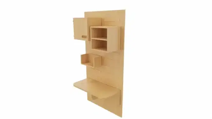 • Flexibilität: Wählen Sie zwischen verschiedenen Regalelementen, Schrankelementen und einer fest oder klappbaren Schreibtischplatte.