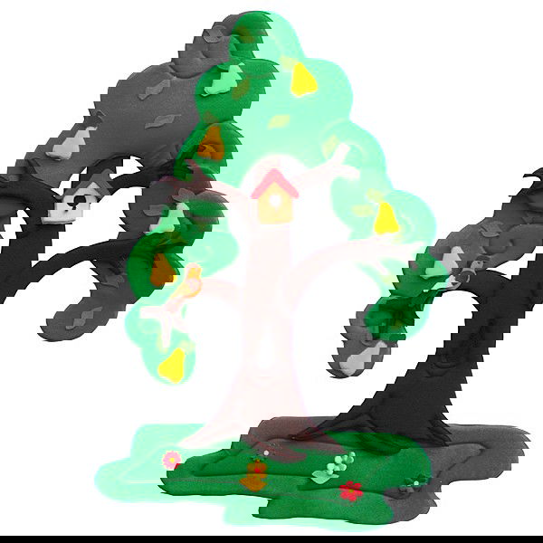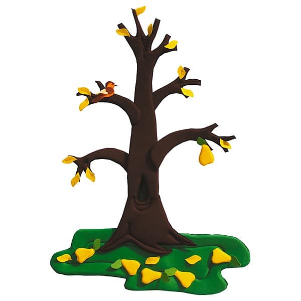 - Abnehmbare Teile des Sets: Baumkrone und Rasen, 15 gelbe Blätter, 5 Birnen, 3 Blumen, 1 Vogel, 1 Nistkasten, 1 Futterhäuschen, 4 Schneeteile.