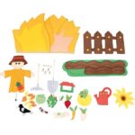 Am Wandbehang finden die Kinder Pflanzen, Vögel, Insekten, aber auch Gärtnerwerkzeuge. Im Winter wird die Vogelfutterstelle angebracht, die alle darin erinnert, sich um unsere kleinen Tierfreunde zu kümmern. Selbst eine Vogelscheuche gibt es – dank Handstab kann sie auch im Puppentheater mitwirken oder Teilnehmer eines Gesprächs über die Natur werden. Alles in Allem ein tolles Spielzeug um die Jahreszeiten in vollen Zügen zu erleben.