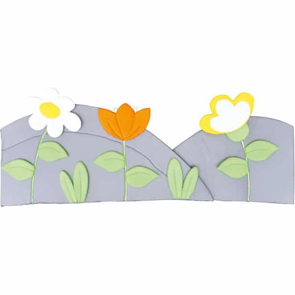 Wanddekoration – Wiese mit 3 Blumen – grau für Kindergärten & Krippe