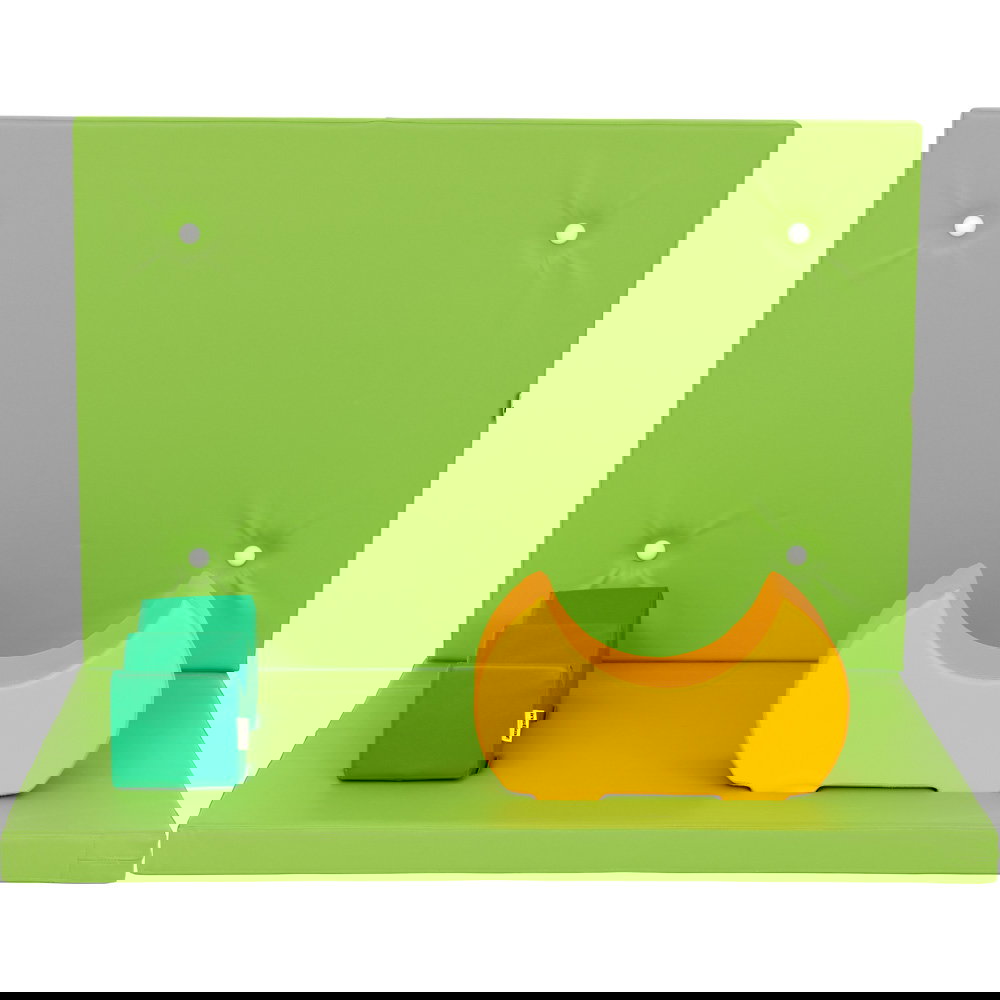 Im Kern der Polsterung sorgt ein weicher, ganze sechs Zentimeter dicker Schaumstoff für eine hervorragende und verlässliche Dämpfung. Damit das Element dauerhaft seine Form behält und absolut sicher an der Wand sitzt, wird der Schaumstoff von einem stabilen Holzrahmen im Inneren gestützt. Diese intelligente und robuste Konstruktion garantiert Ihnen eine außergewöhnlich lange Lebensdauer, selbst bei stärkster täglicher Beanspruchung durch viele Kinder. Umhüllt ist das Wandpolster von einem hochwertigen Kunstleder. Dieses Material fühlt sich nicht nur sanft und angenehm an, sondern hält auch den größten Belastungen im turbulenten Alltag mühelos stand.