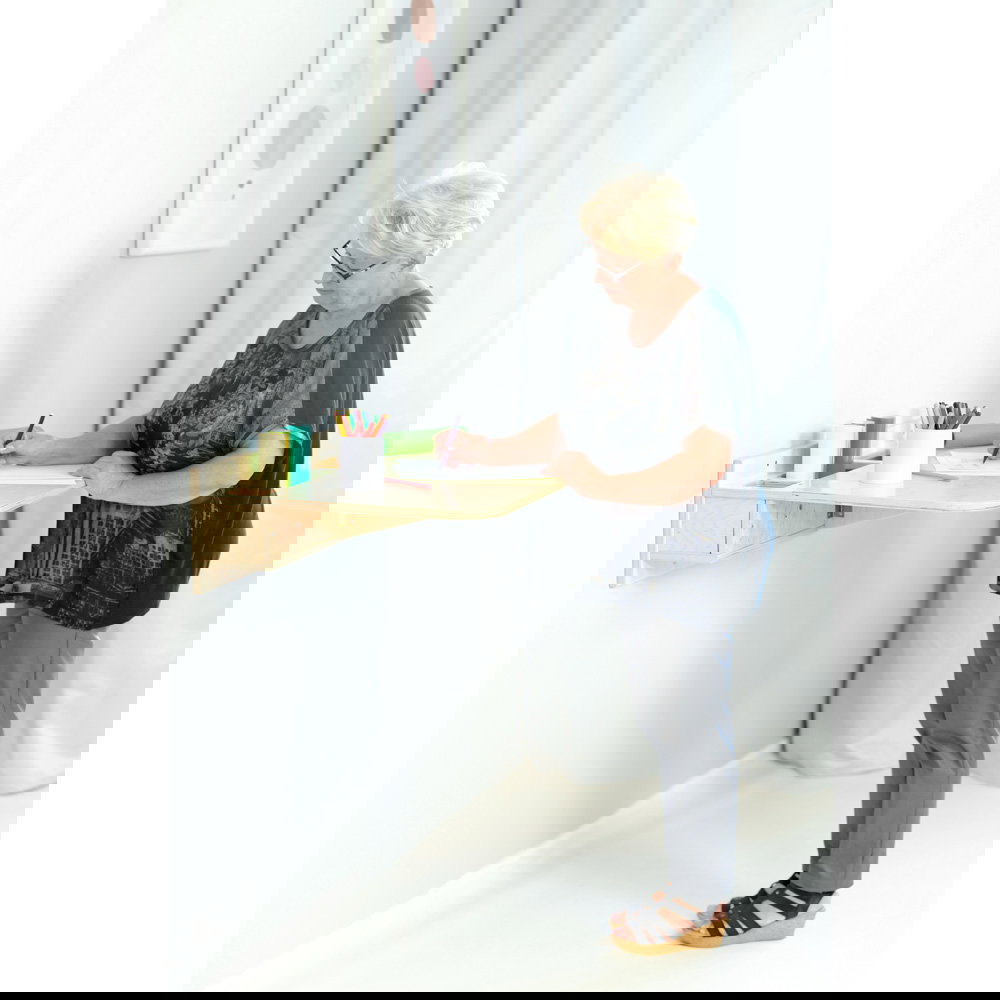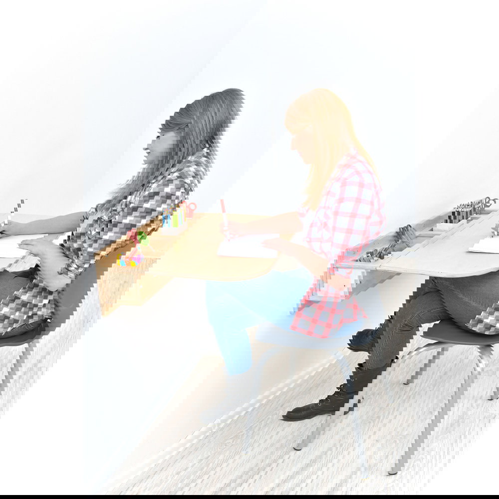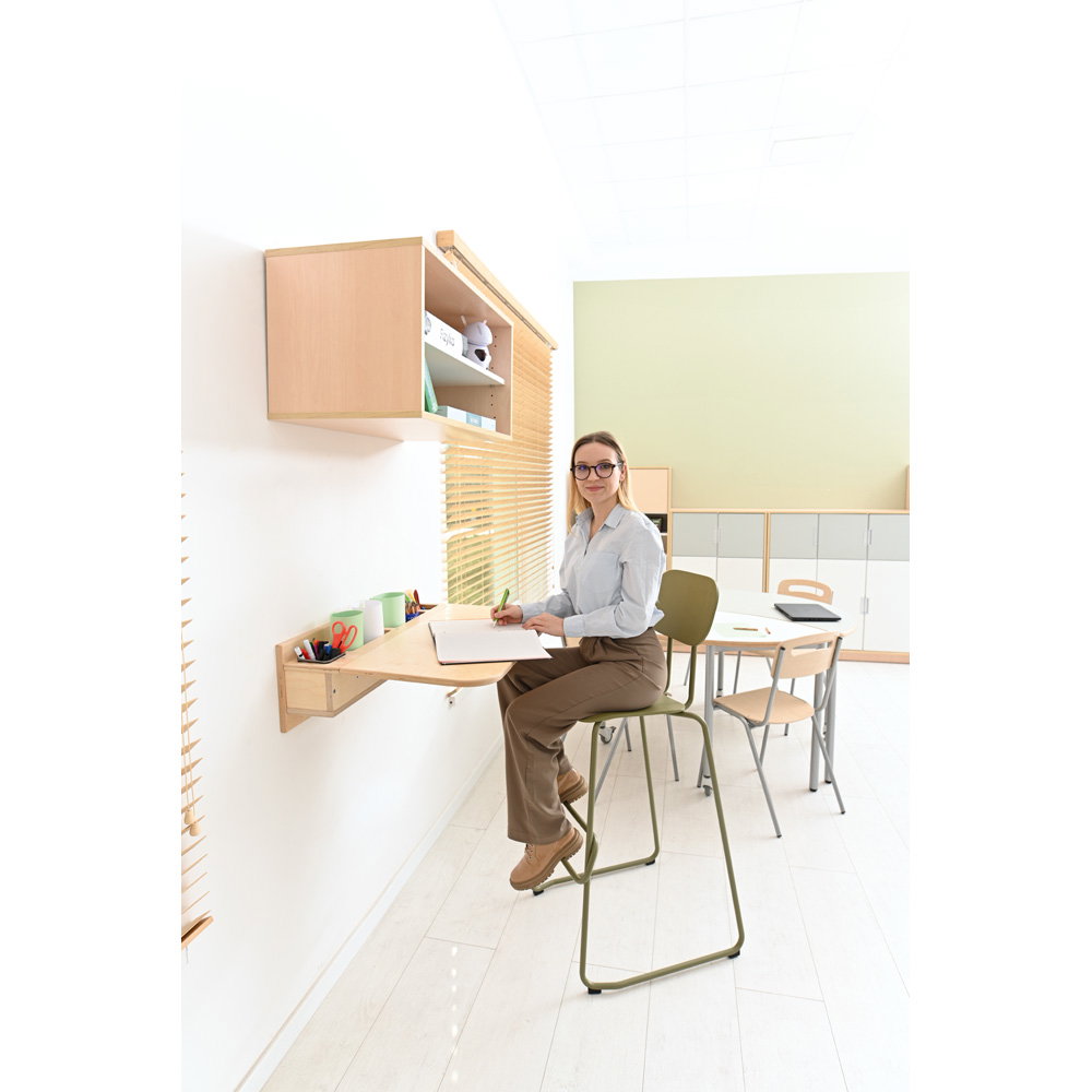 Montieren Sie das Pult in der Höhe, die Sie benötigen. So kann es als Sitzarbeitsplatz für Kinder oder als Stehpult für Erwachsene dienen. Es ist die ideale Lösung für enge Flure, kleine Nischen oder als ergänzender Arbeitsplatz in Gruppenräumen.