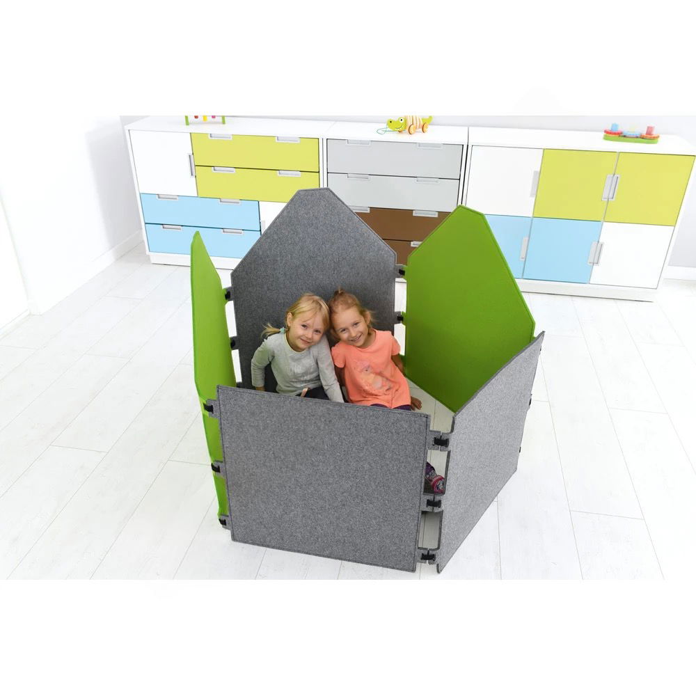 Die ansprechende Haus-Form ist mehr als nur eine Trennwand – sie ist ein Spielelement, das die Fantasie anregt. Die Wandschirme sind in verschiedenen Formen und Farben erhältlich und laden zum kreativen Kombinieren ein, um individuelle und einladende Landschaften zu gestalten. - Fördert Konzentration und Rückzug