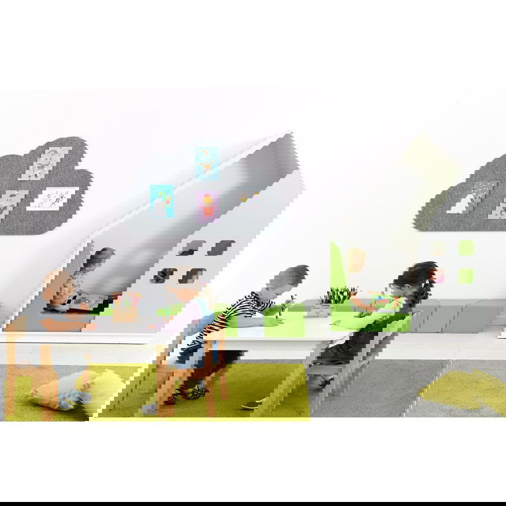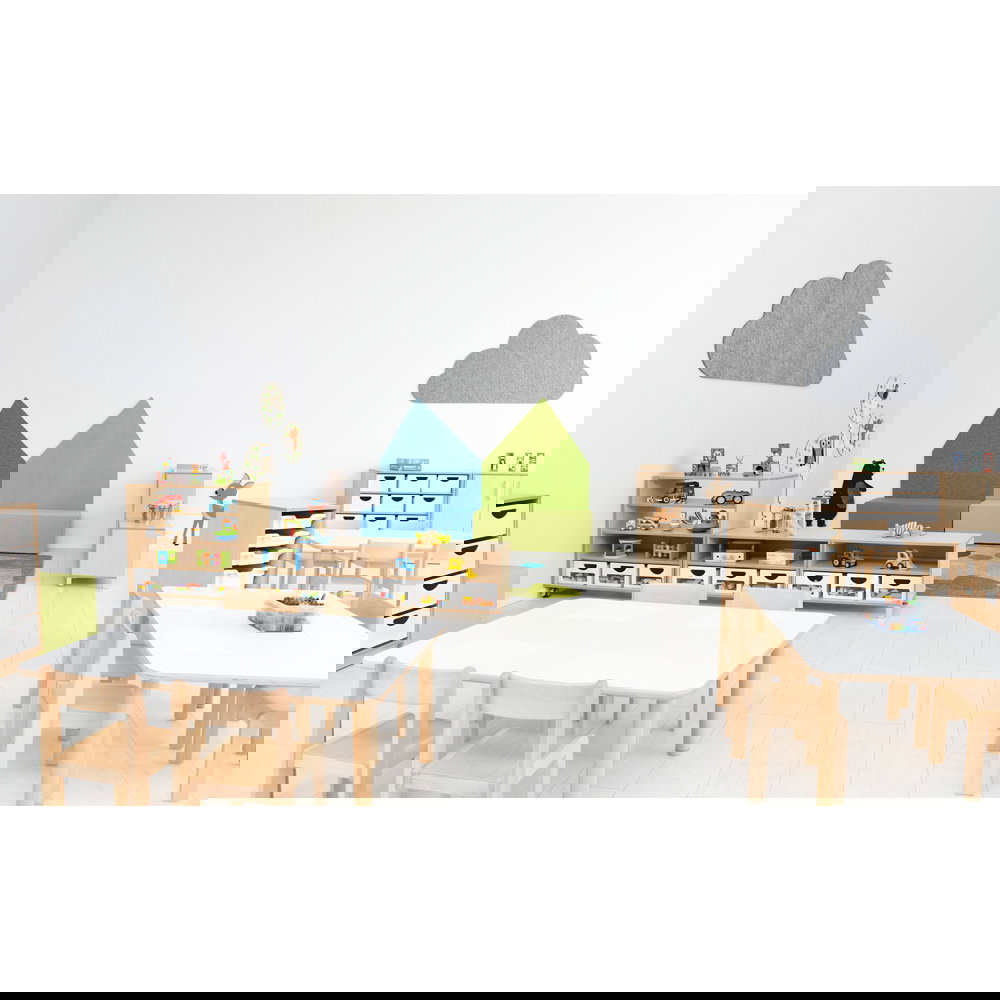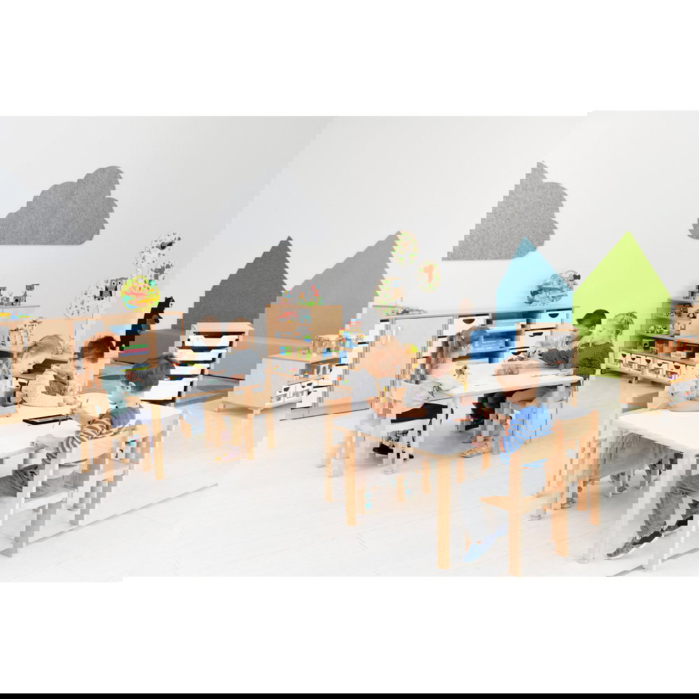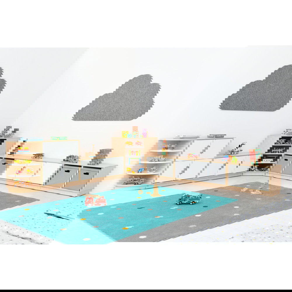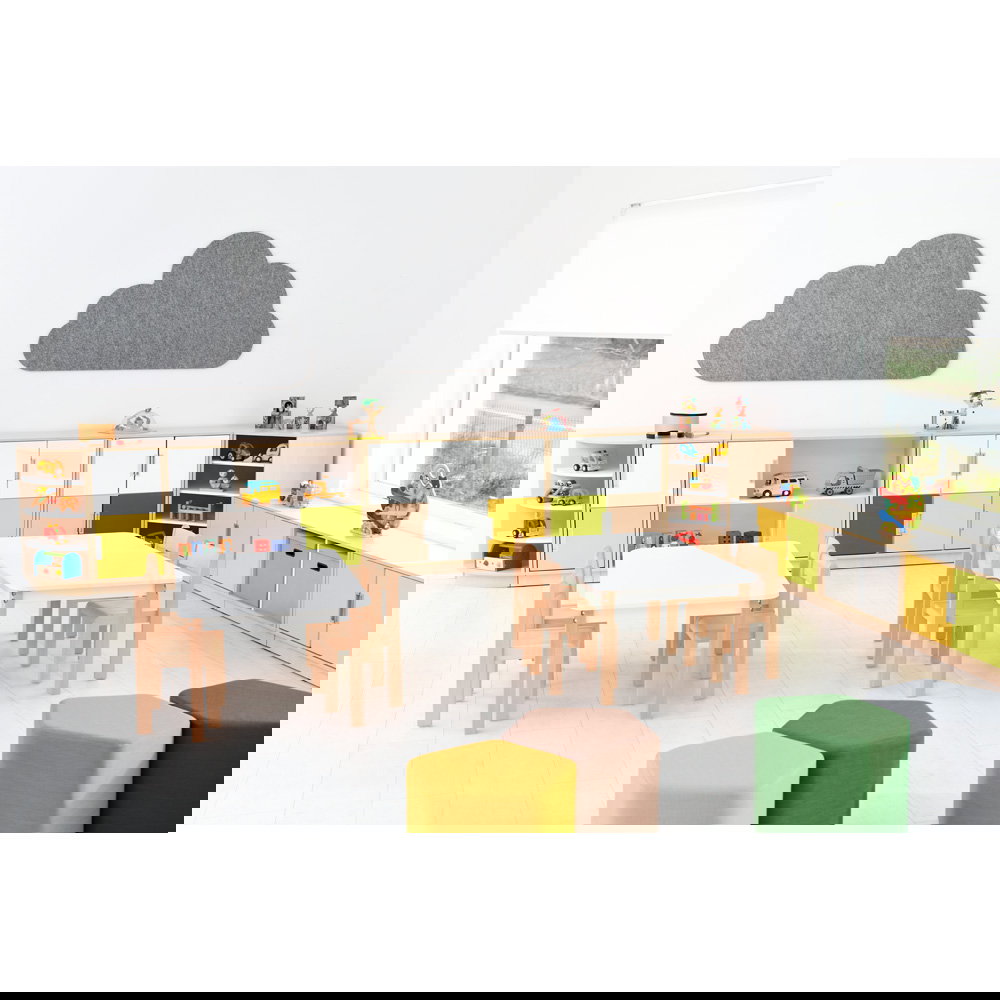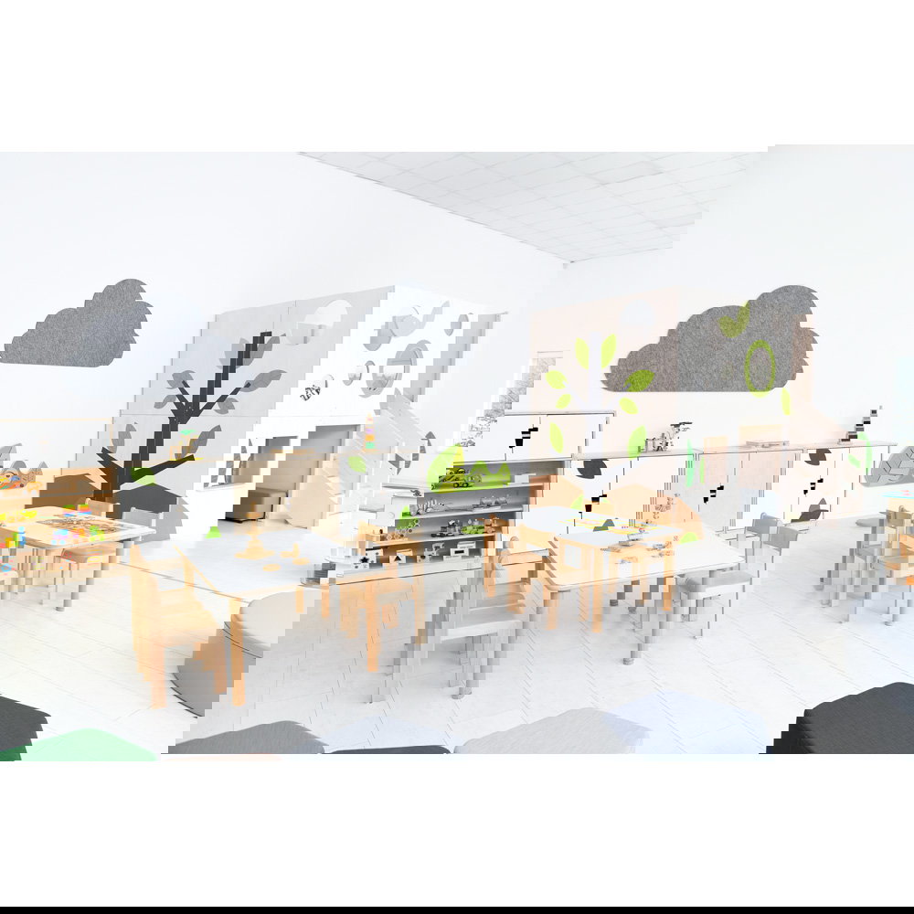 Die Zertifizierung als schwer entflammbar (Klasse C-s2, d0) ermöglicht den sicheren Einsatz in öffentlichen Einrichtungen wie Kitas und Schulen. - Freundliches und beruhigendes Design